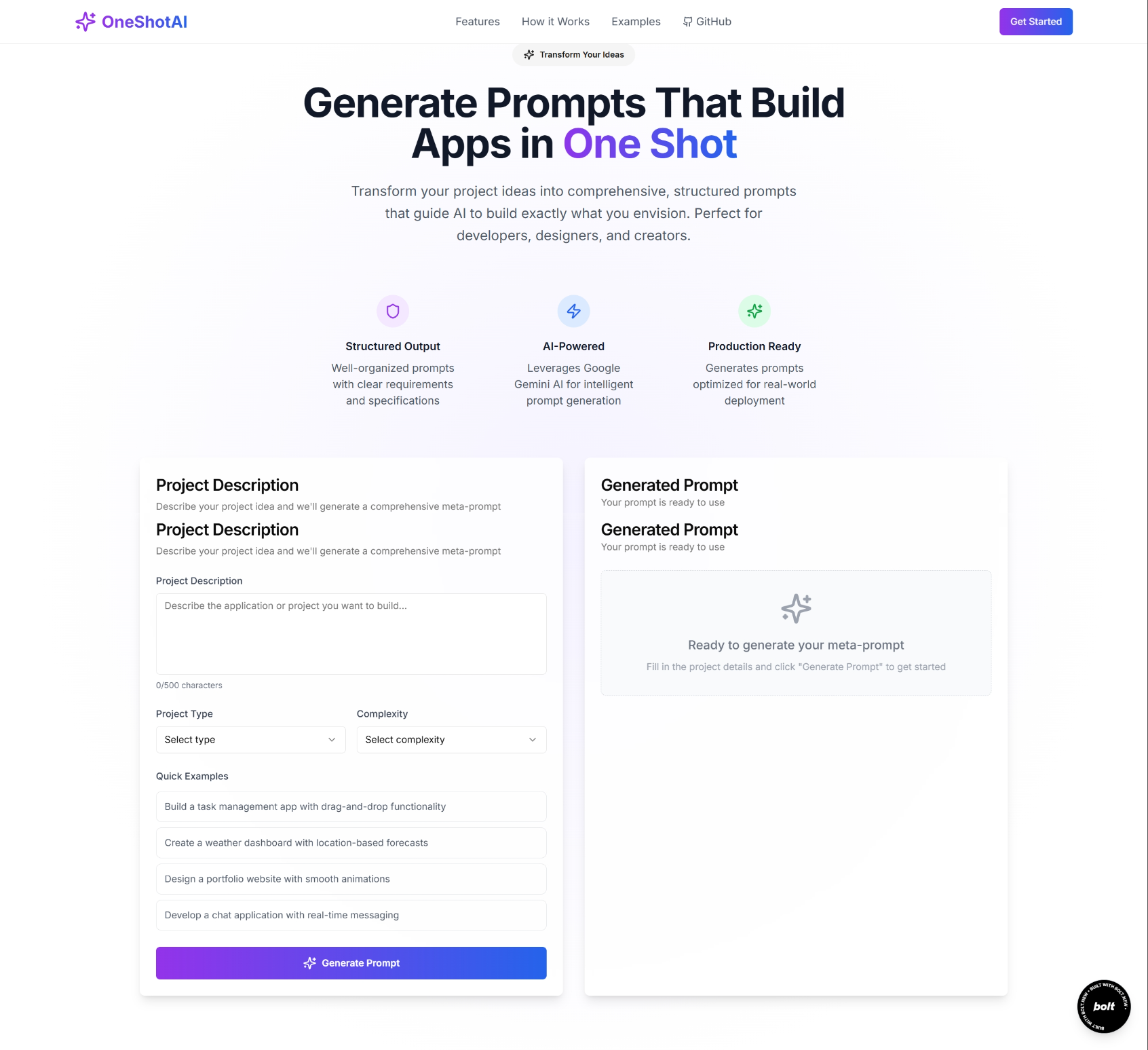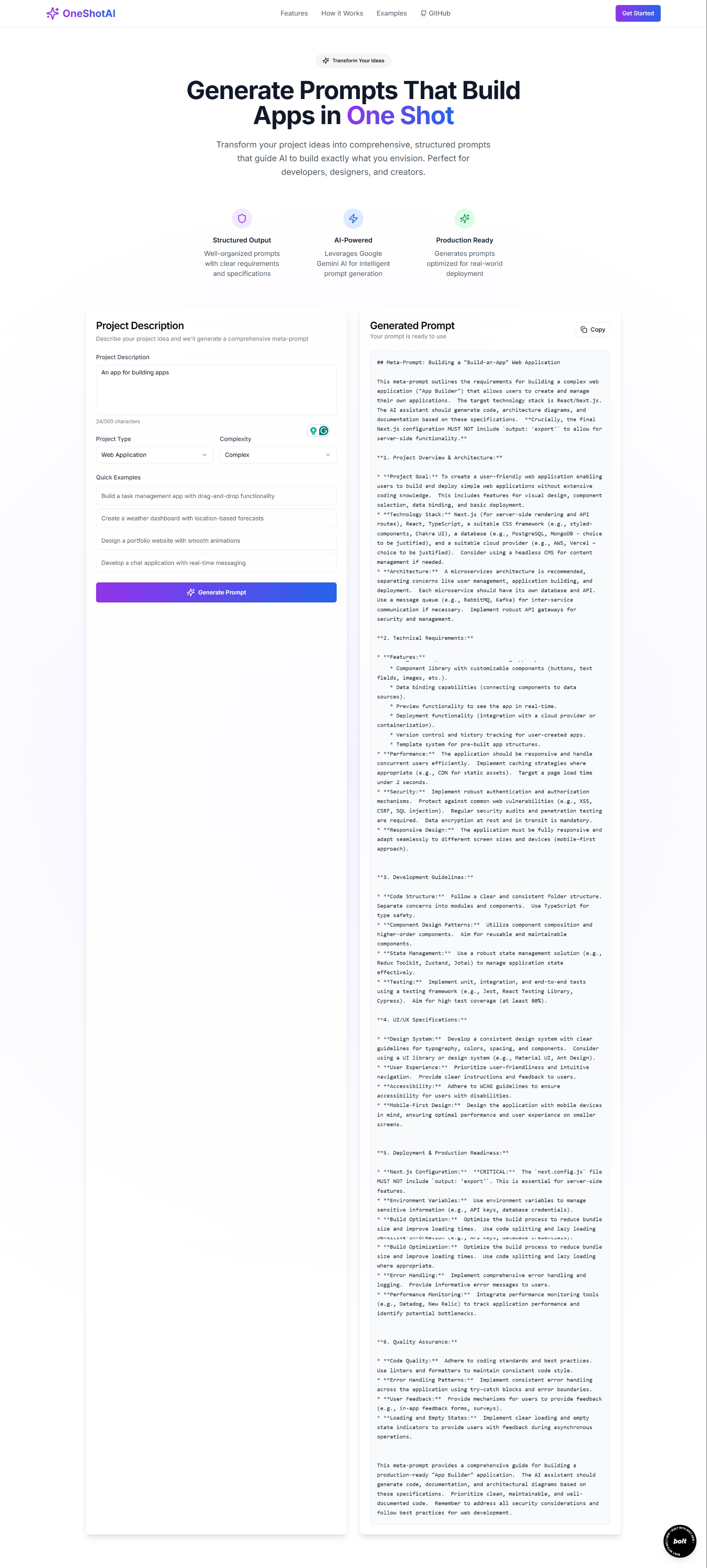 To build it, I first tried building the entire app in multiple prompts with Bolt to understand how it works, then reverse-engineered it and created my prompt accordingly.