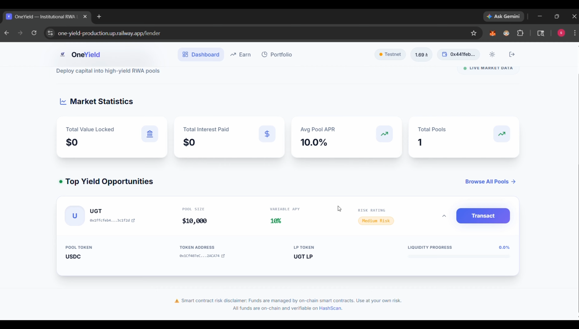 Demo & Testing For testnet usage, users can obtain Mock USDT from the faucet: https://one-yield-production.up.railway.app/faucet This enables full interaction with the protocol including deposits, lending, and pool operations.