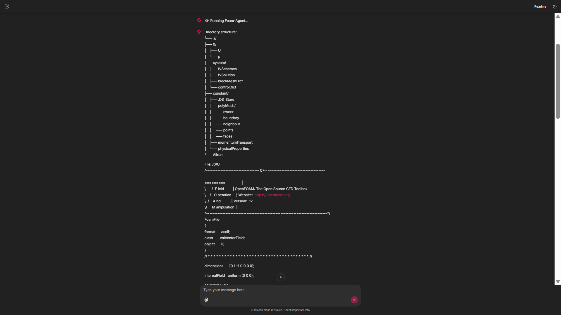 systemfiles first, thenconstant, then0files) to ensure consistency and reduce errors. - Runner Agent: This agent executes the simulation. For this hackathon, we run it locally, but the framework is designed to automatically generate Slurm scripts and submit jobs to HPC clusters.