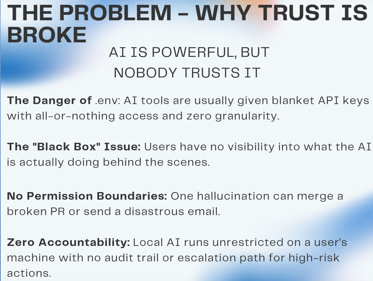 AI agents can already read repositories, send emails, and modify production systems, but most of them still rely on long-lived API keys hidden in .env files. That means one misconfigured agent can act with far more power than it should, and teams often have no clear record of what happened, why it happened, or whether a human truly approved it.