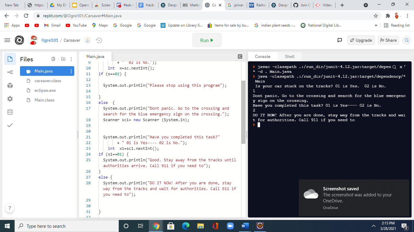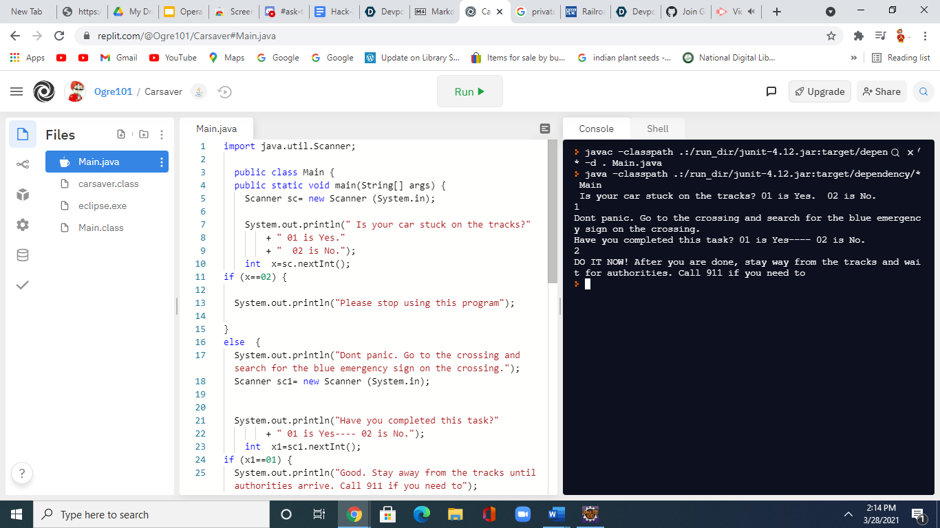 This program informs a person who is in an event in which their car is stuck on train tracks at an unmanned crossing.