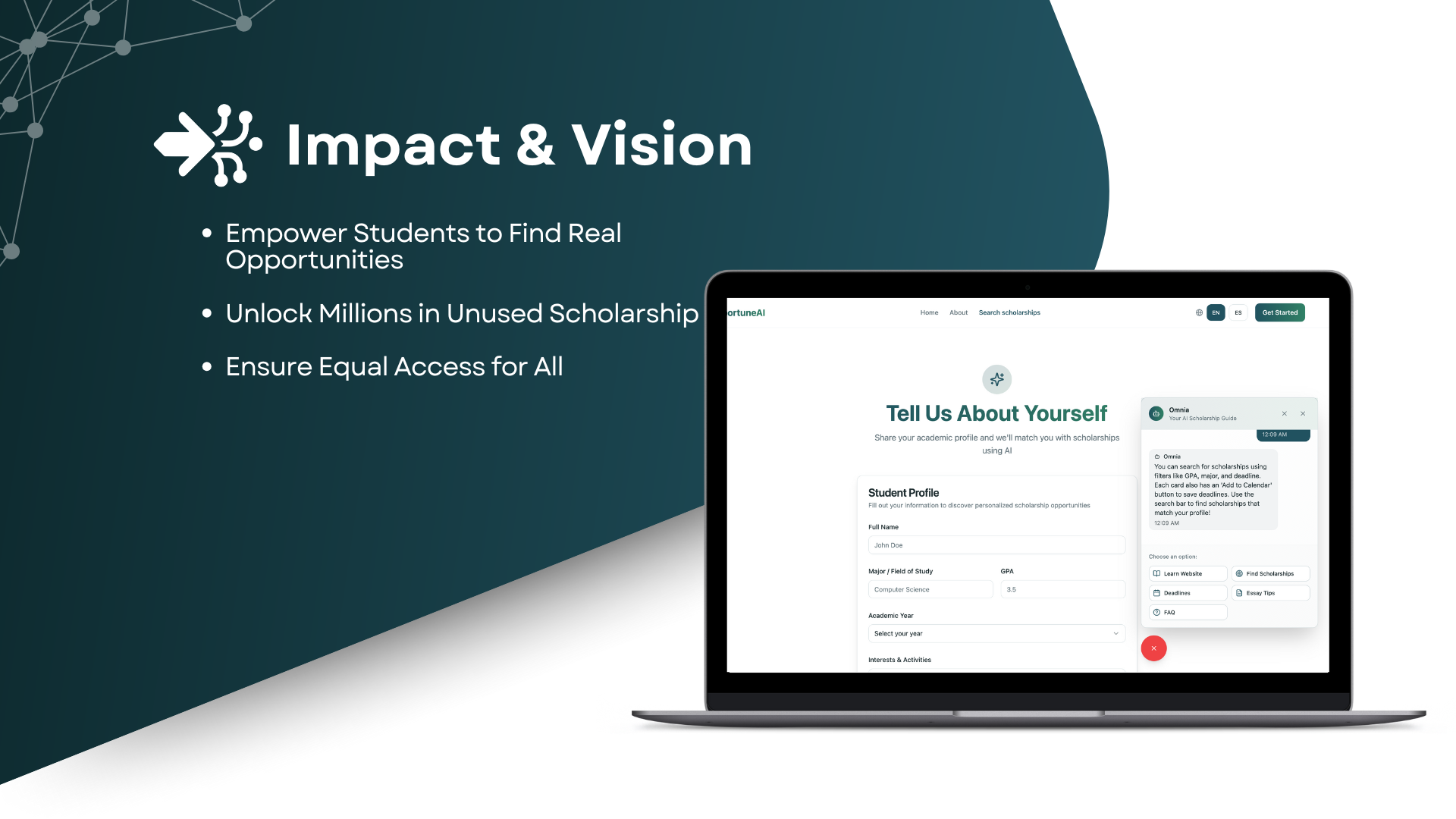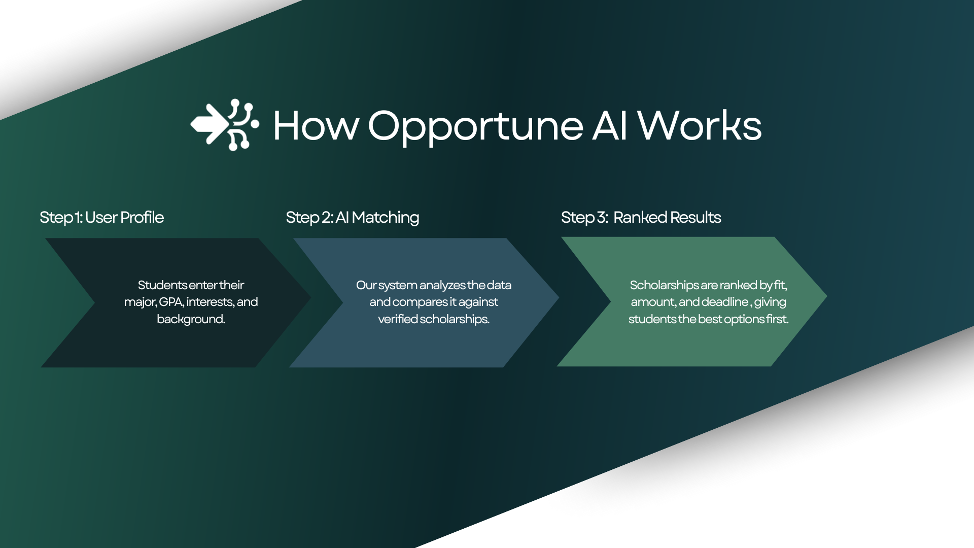With OpportuneAI, we make scholarship searching simple, accessible, and personal for every student.