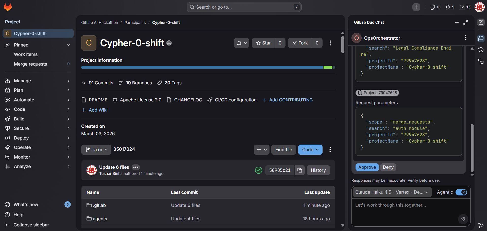Human-in-the-Loop Balancing: We had to ensure the agents were autonomous but safe. Building the Two-Step Protocol was a core design challenge: how do you make an agent smart enough to fix a failing pipeline but "polite" enough to ask first? We landed on a phrase-based trigger system that requires a human to explicitly sign off before the AI commits anything.