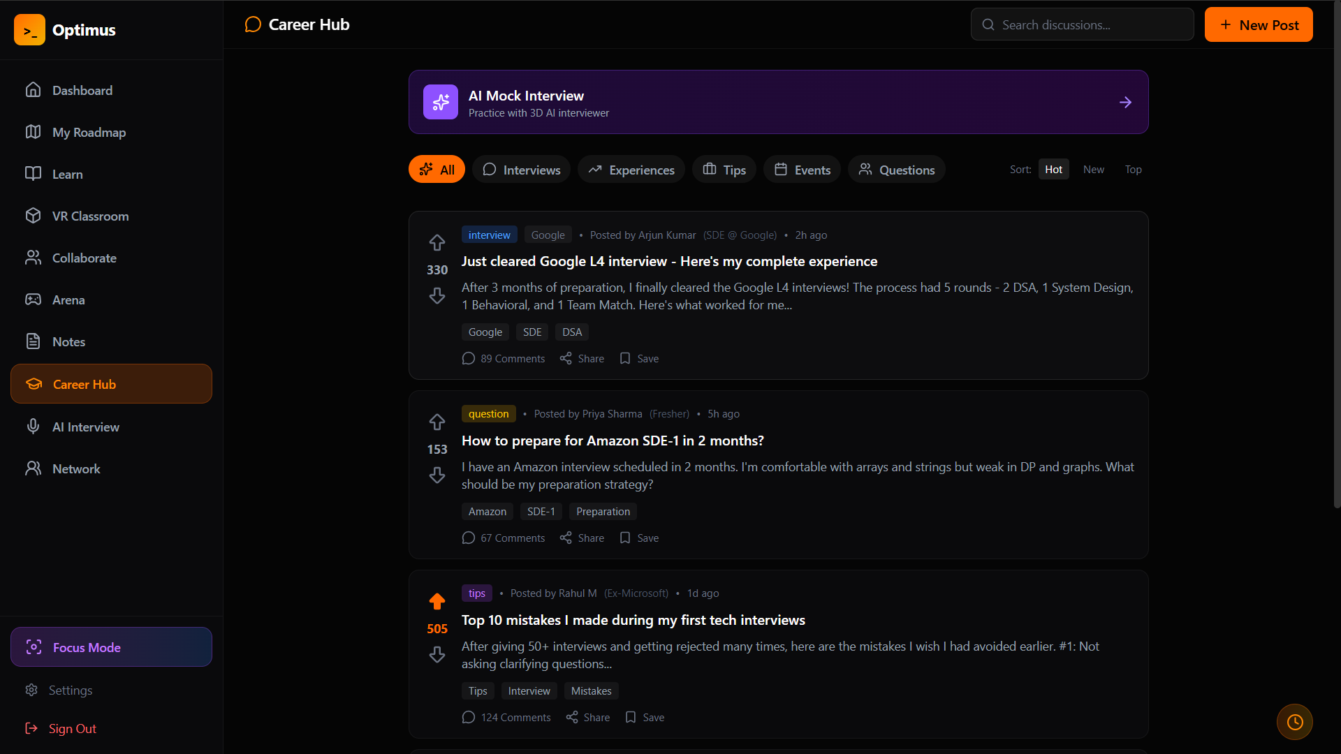 Focus Mode - Distraction-blocking deep work sessions with Pomodoro integration Voice Navigation - Hands-free platform control for accessibility