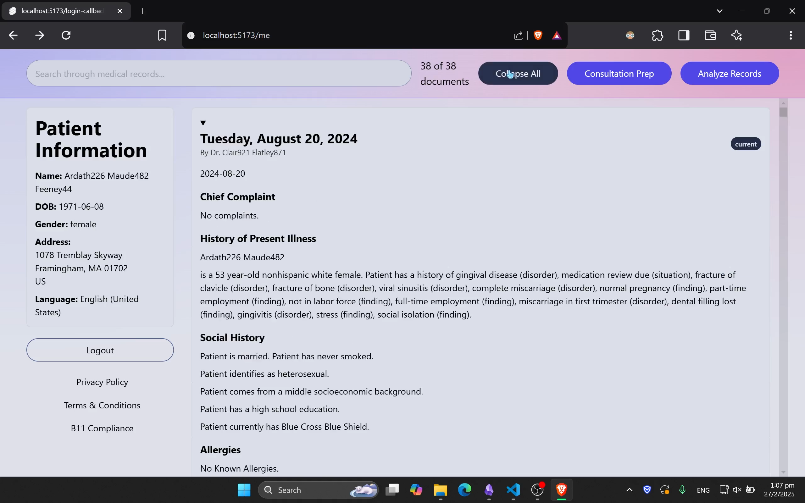 - AI Response: The LLM returns a JSON-based analysis or consultation prep plan.