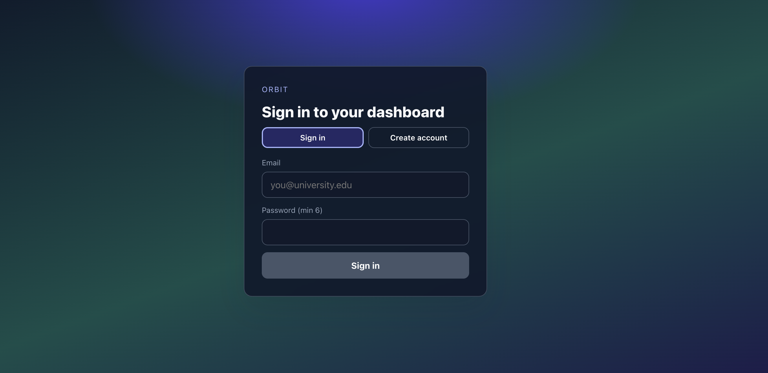 Oribt sign-in — Supabase-backed accounts so goals, calendar, and streaks sync across devices.