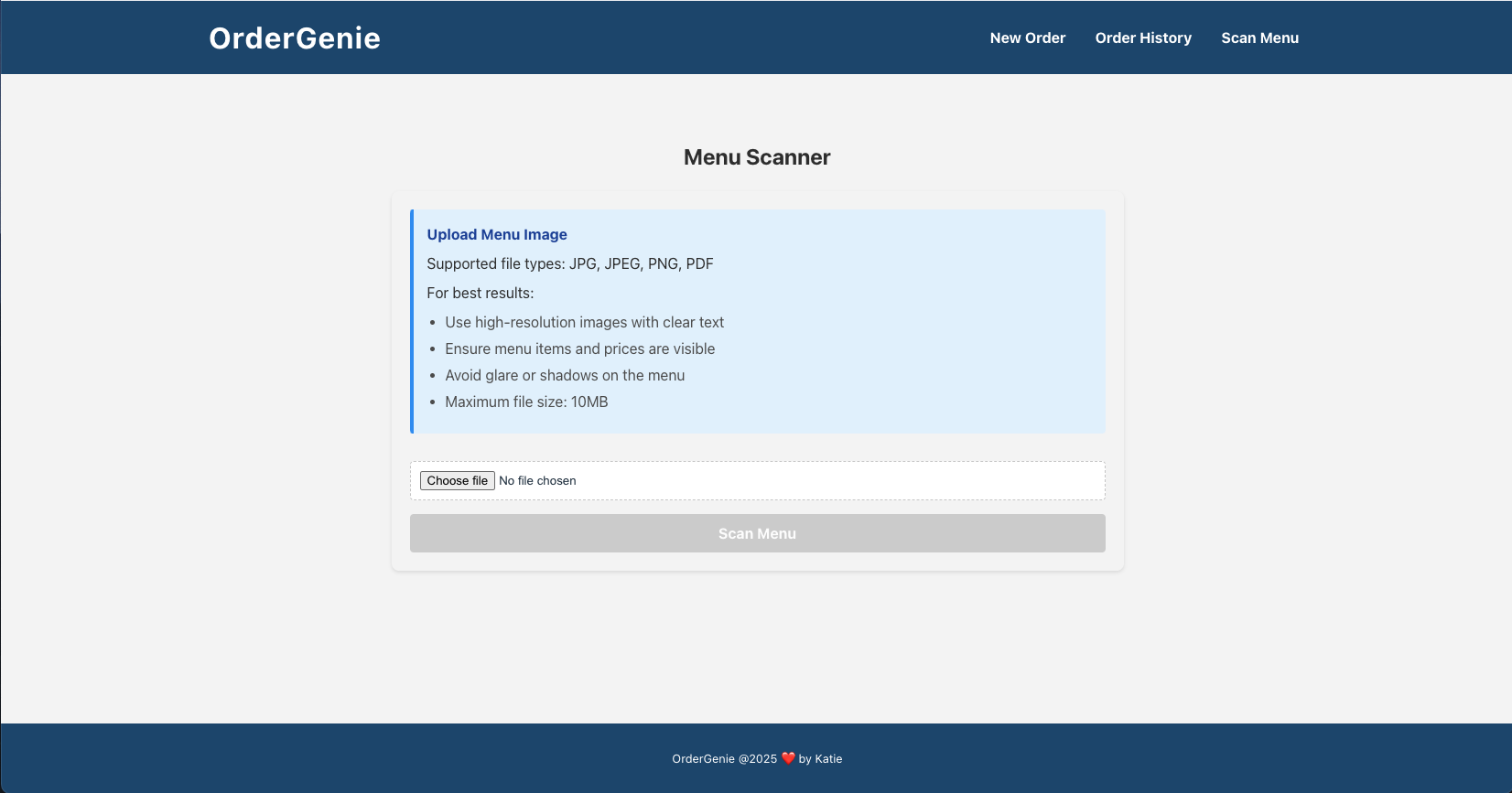 Menu Scanner Page