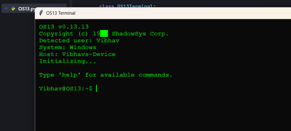 ```I built OS13 entirely in Python 3.8+ with Tkinter. No external dependencies. The architecture is straightforward: