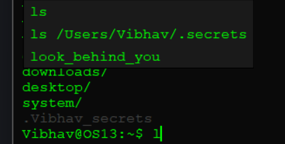 OS13 starts as a normal terminal. You type help, ls, whoami—everything works fine. Then things change.