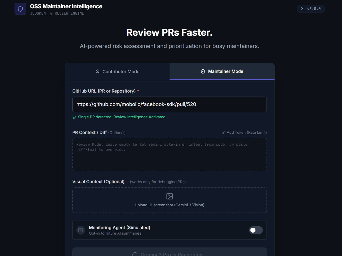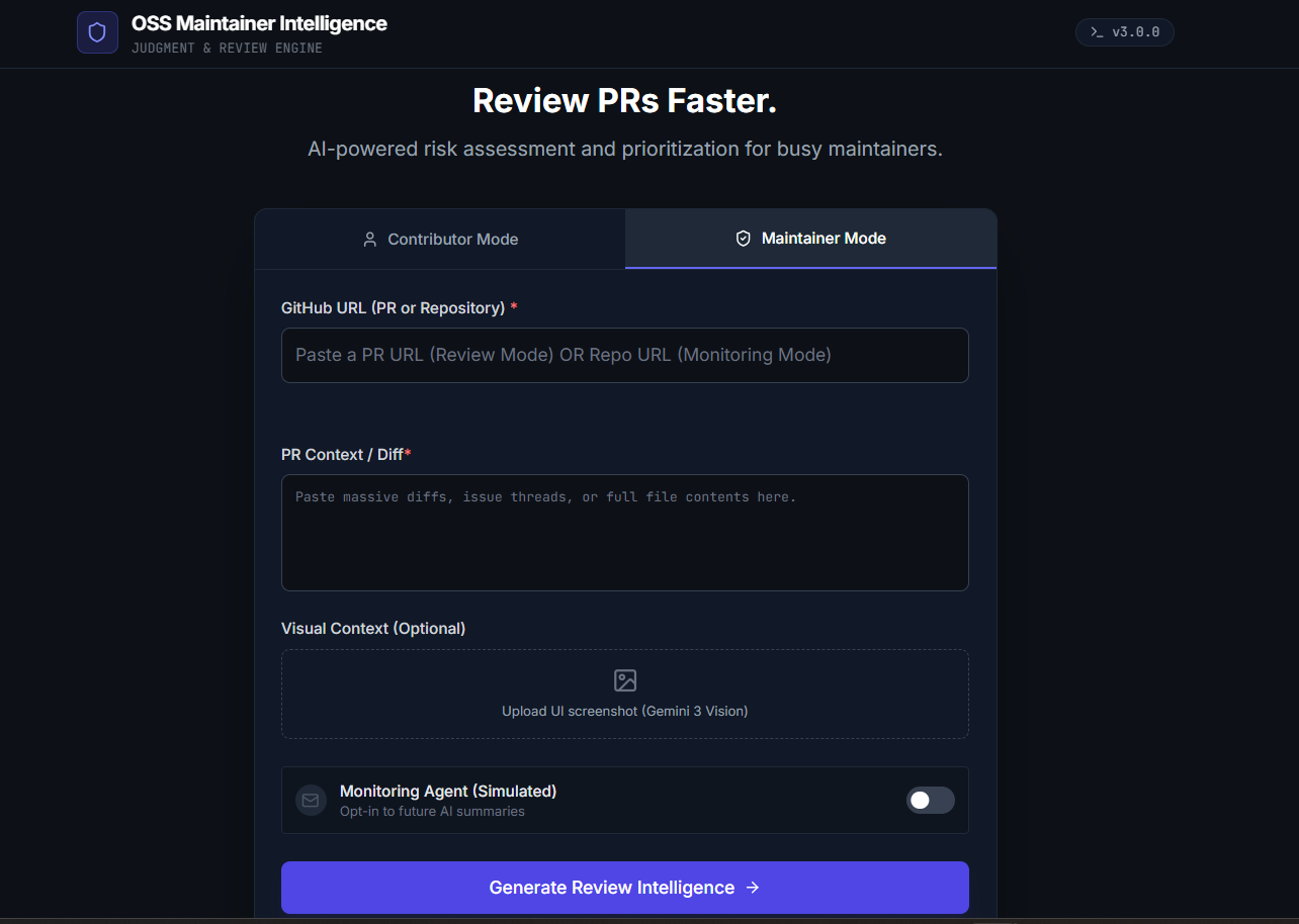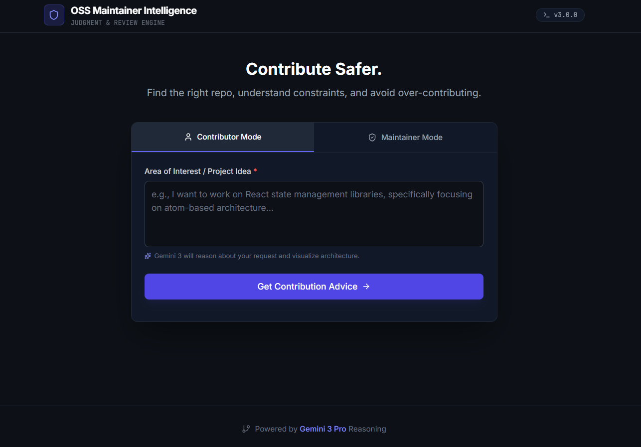 OSS Maintainer Intelligence is a Gemini 3–powered application that supports both contributors and maintainers.