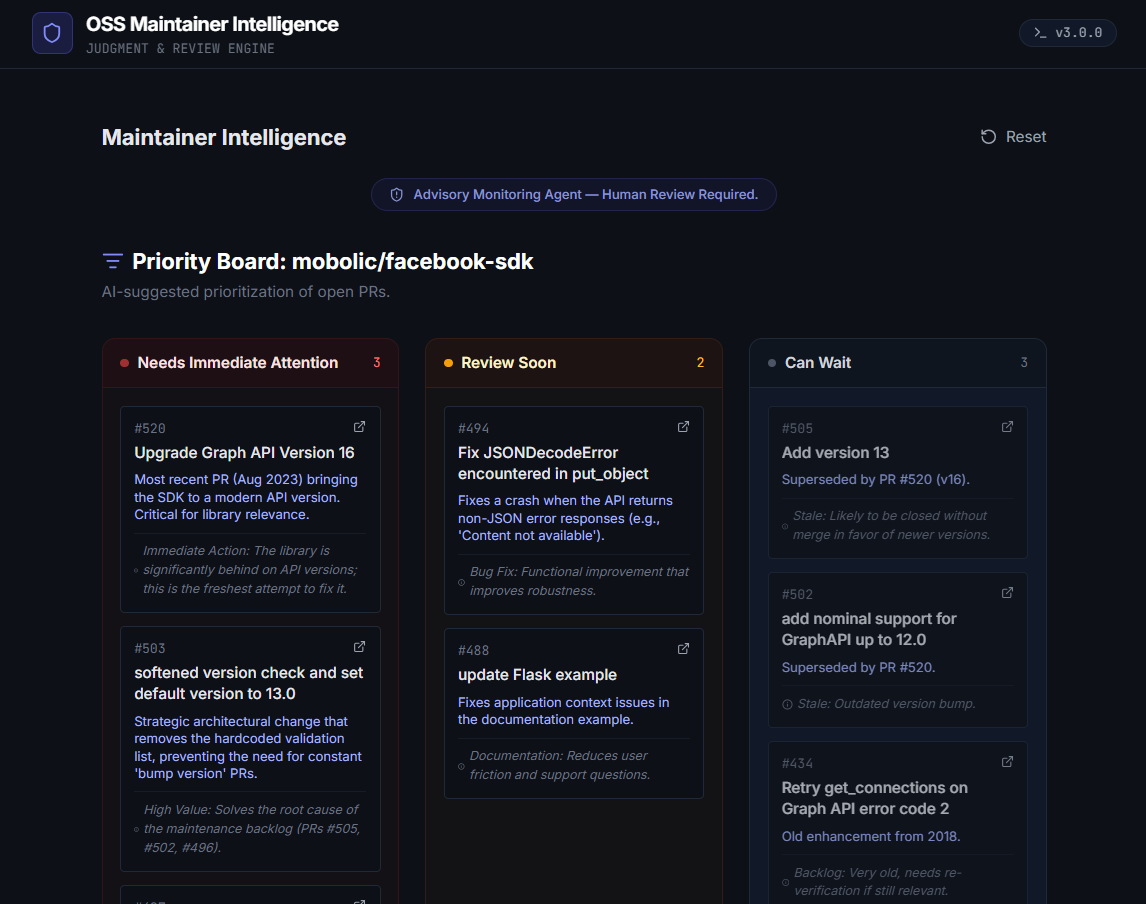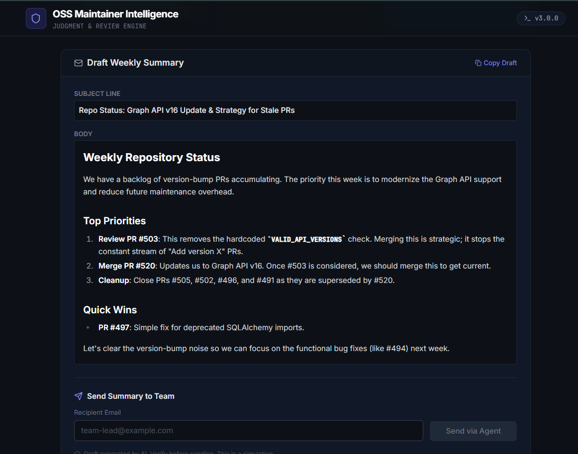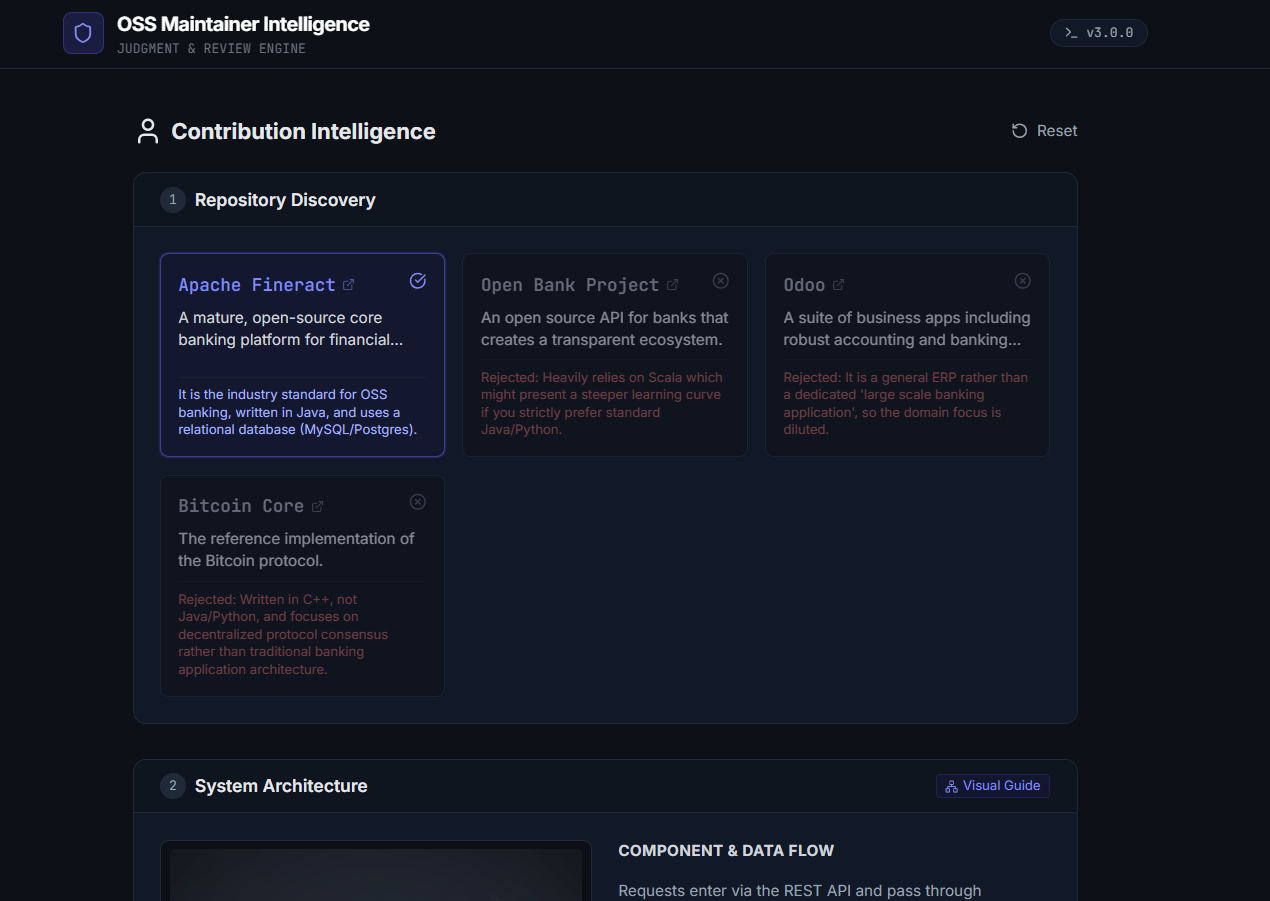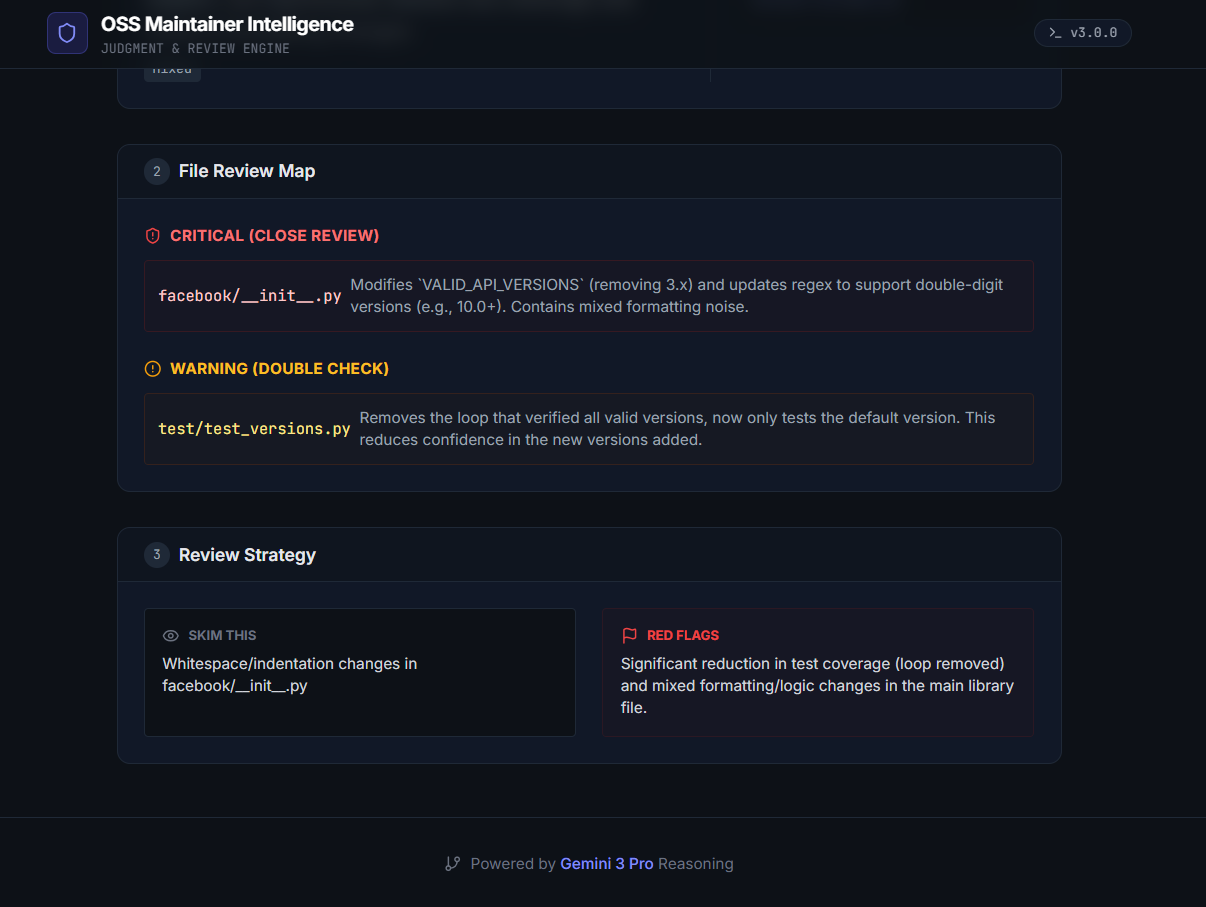 OSS Maintainer Intelligence is a Gemini 3–powered application that supports both contributors and maintainers.