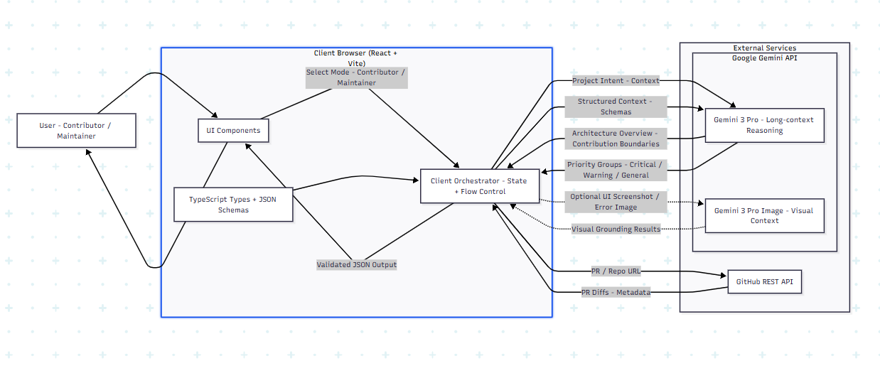 Open Source Software (OSS) is facing a growing imbalance. On one side, maintainers are burning out, overwhelmed by large pull requests and constant notification noise. On the other side, new contributors are often lost, submitting trivial or poorly scoped PRs because they don’t understand the system architecture.
