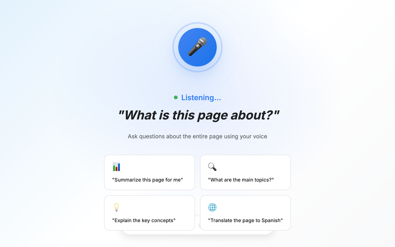 - Speak a question → Voice command answers using the current page