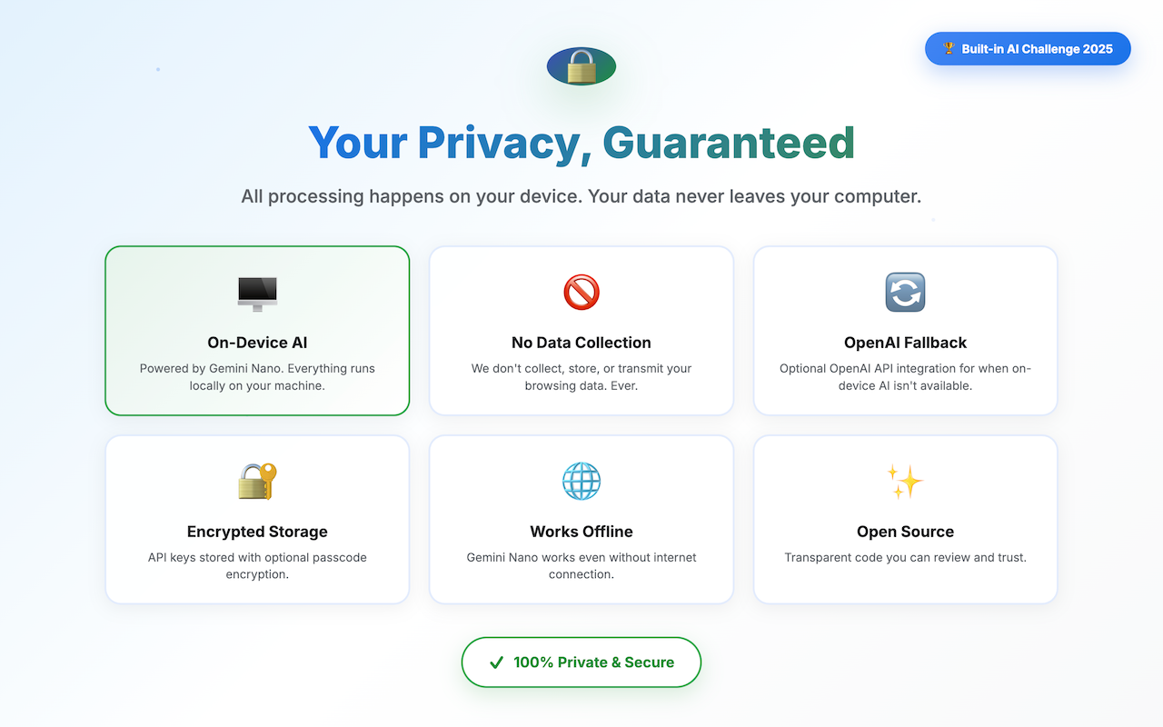 Your on-device AI browsing companion - private, fast, and built with Gemini Nano!