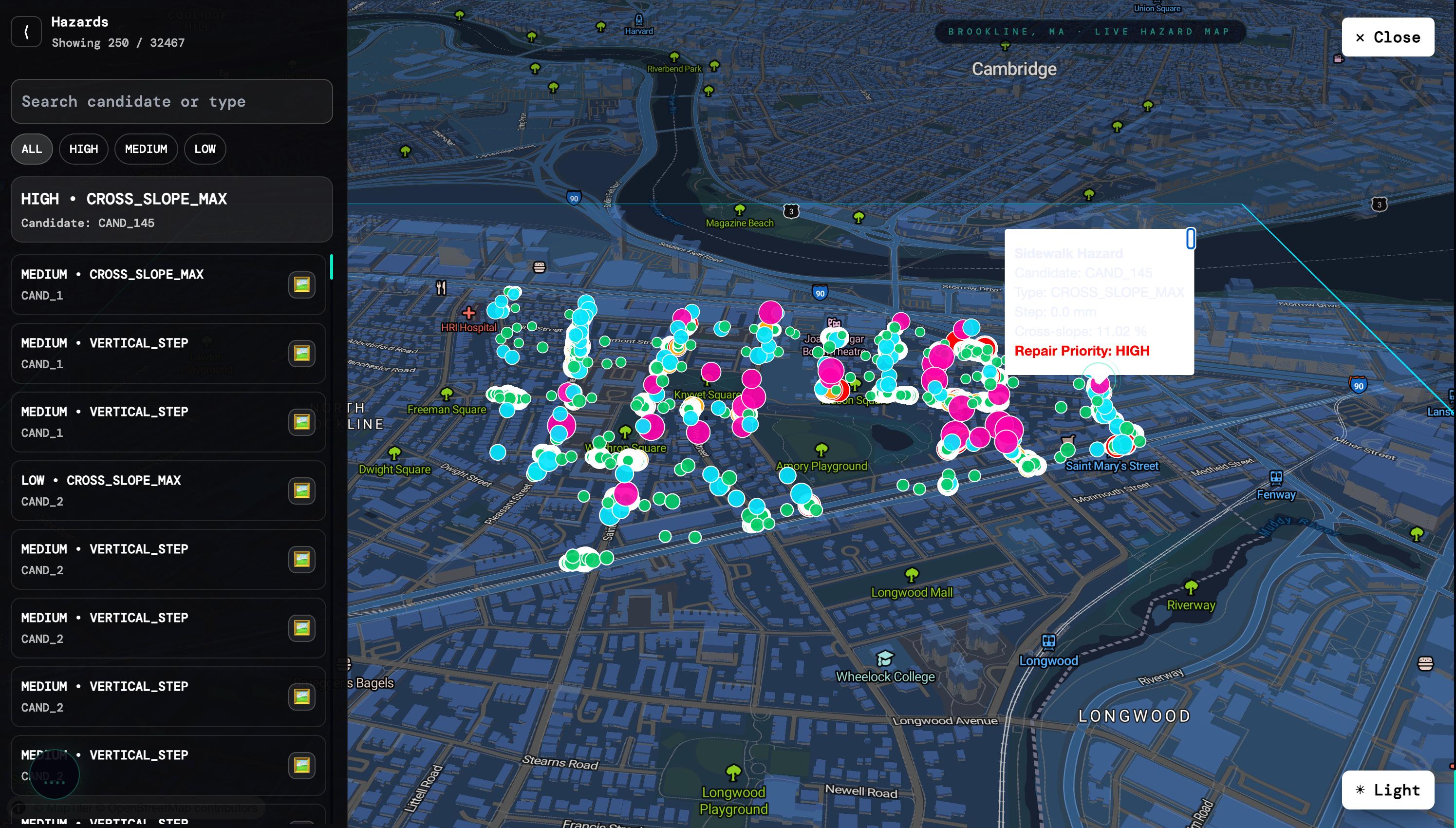 | Sidewalk candidates analyzed | 250 |