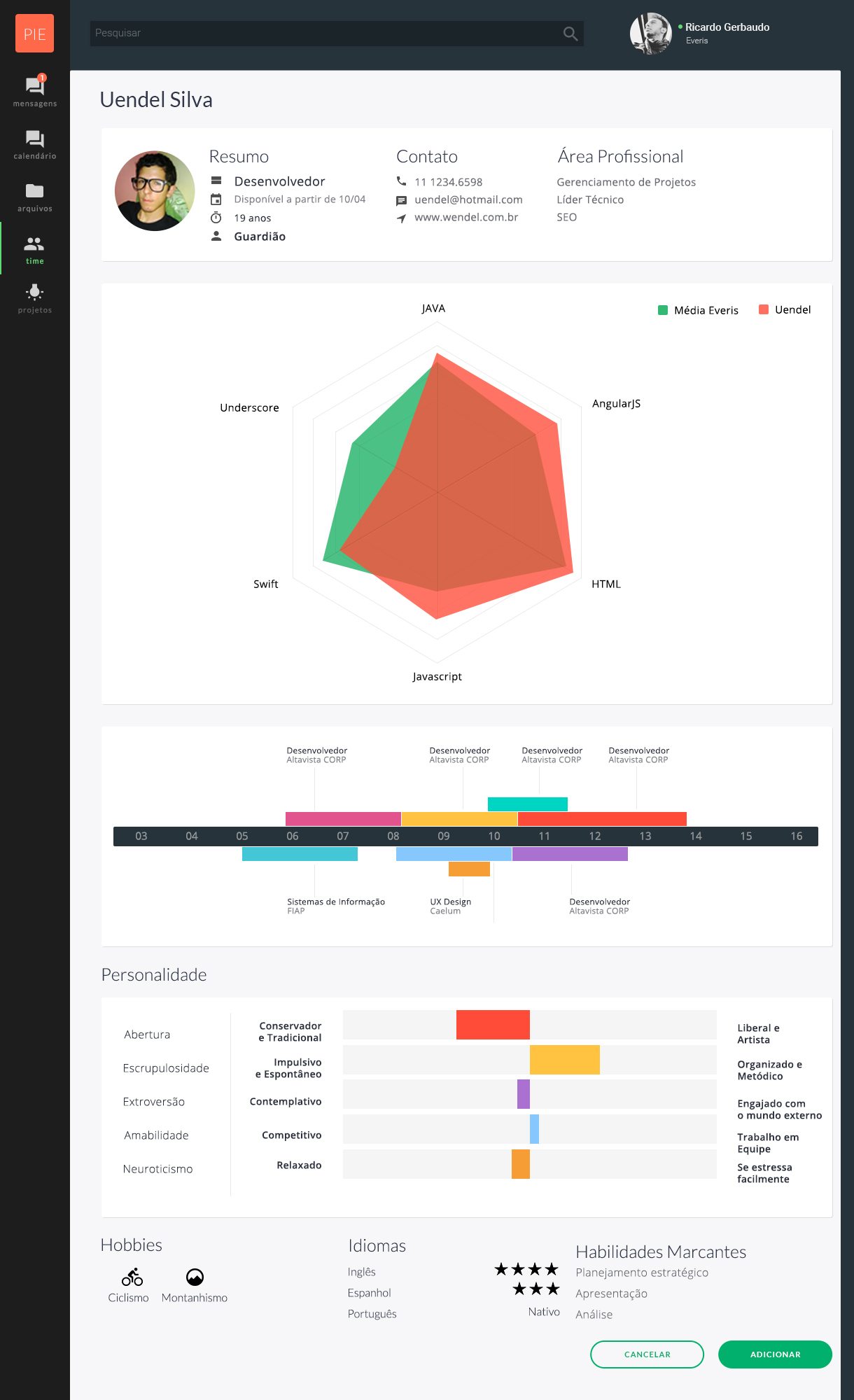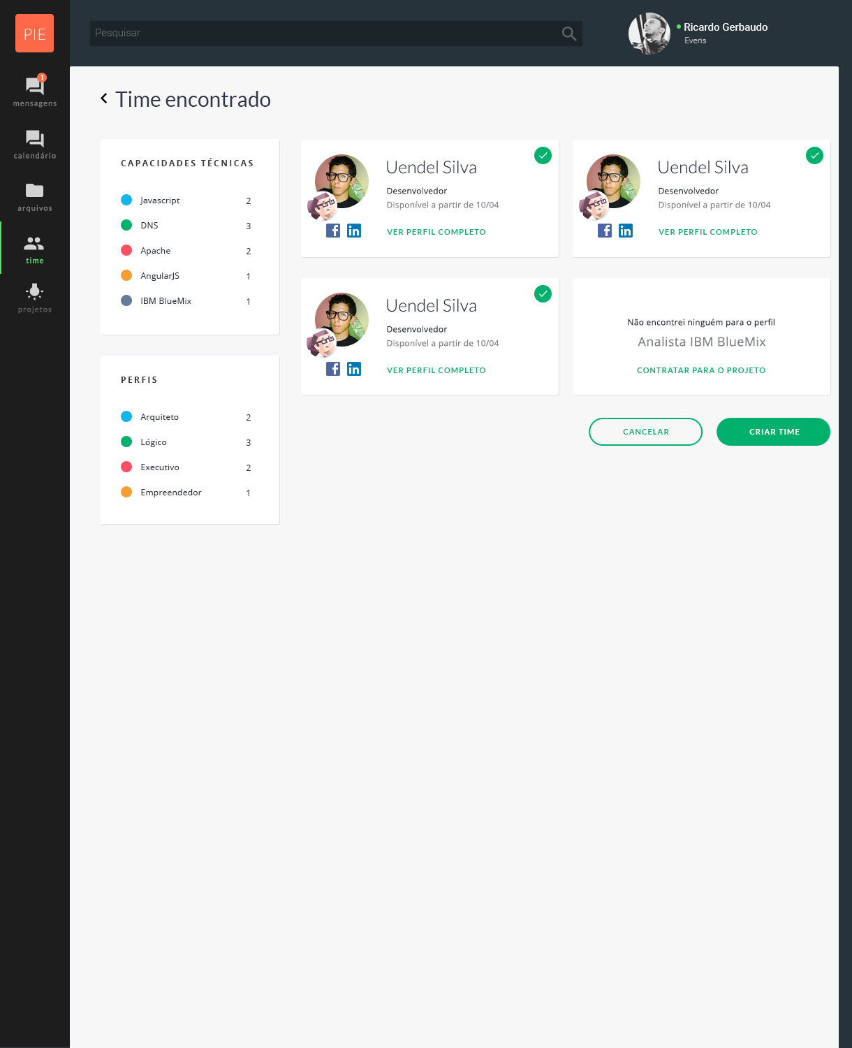 Criamos a Plataforma de Inovação Empresarial, PIE, que vai fazer exatamente isso: combinar pessoas de perfis diferentes, com experiências, capacidades comportamentais e técnicas diversas pra montar o time perfeito que se complemente pra resolver um problema dos nossos clientes.