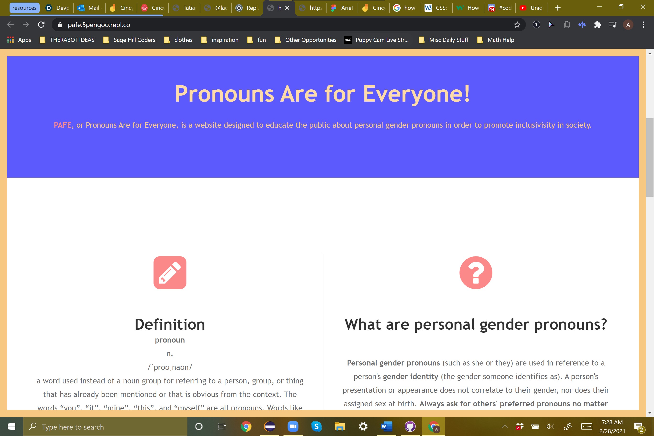 All three of us are very passionate about inclusivity in society and aiding marginalized people. We decided to make a website easily accessible by everyone on the internet to try to spread awareness about pronouns and people who use gender-neutral pronouns.