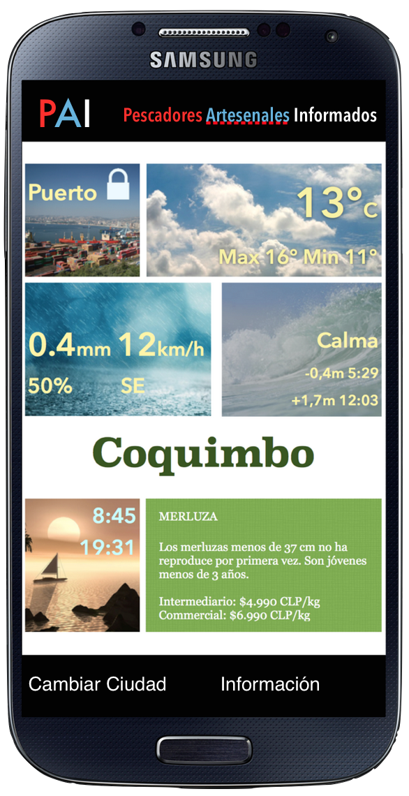 Most fishermen in low income countries do not have equal access to information as large professional fishing operations. Our dashboard gives real time data through SMS and encrypted Radio sounds. We enable this with partnerships with major carries; in Chile, this is Claro, Intel, and Movistar.