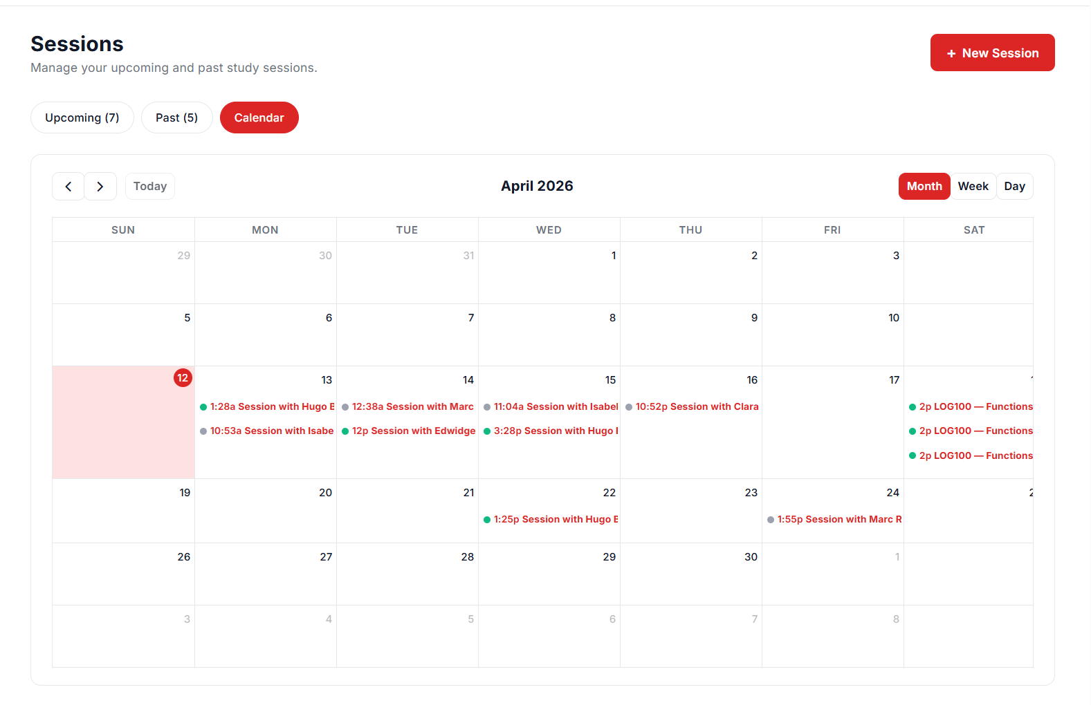 PairUp is stricly reserved for students (must register with an edu domain email address) and uses AI in order to match students to a potention study partner. After creating a profile, the user can already go look for potention study partner or can look for open study groups. Having a complete profile with as much information possible make it easier to find compatible partners. After matching to a study partner, the students can message each other on the app in order to create a study session. After choosing a date, one of the user create a study session in the sessions section and invites it's partner. The sessions appear in the user's calendar and after the session, the user can decide if the session is done, cancelled or if the user had a no-show.