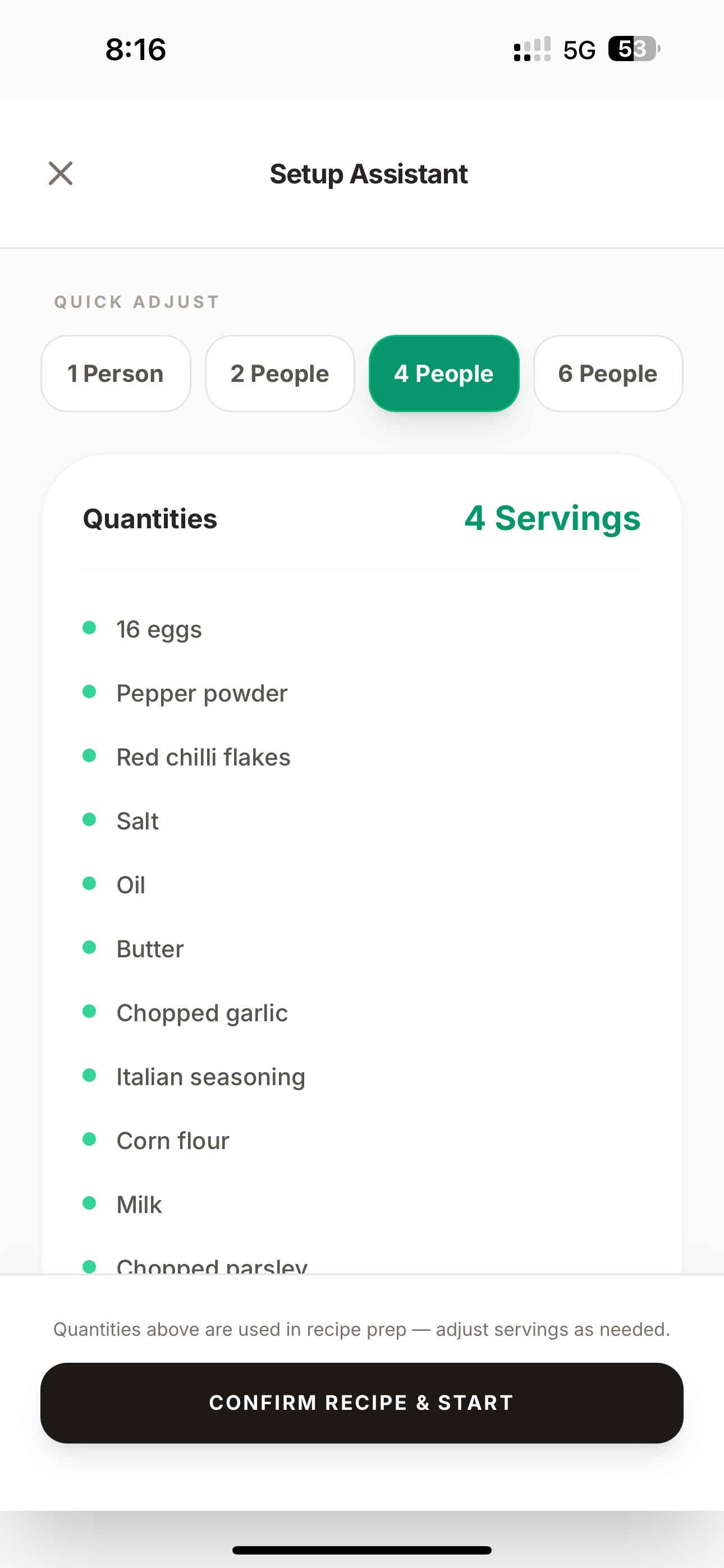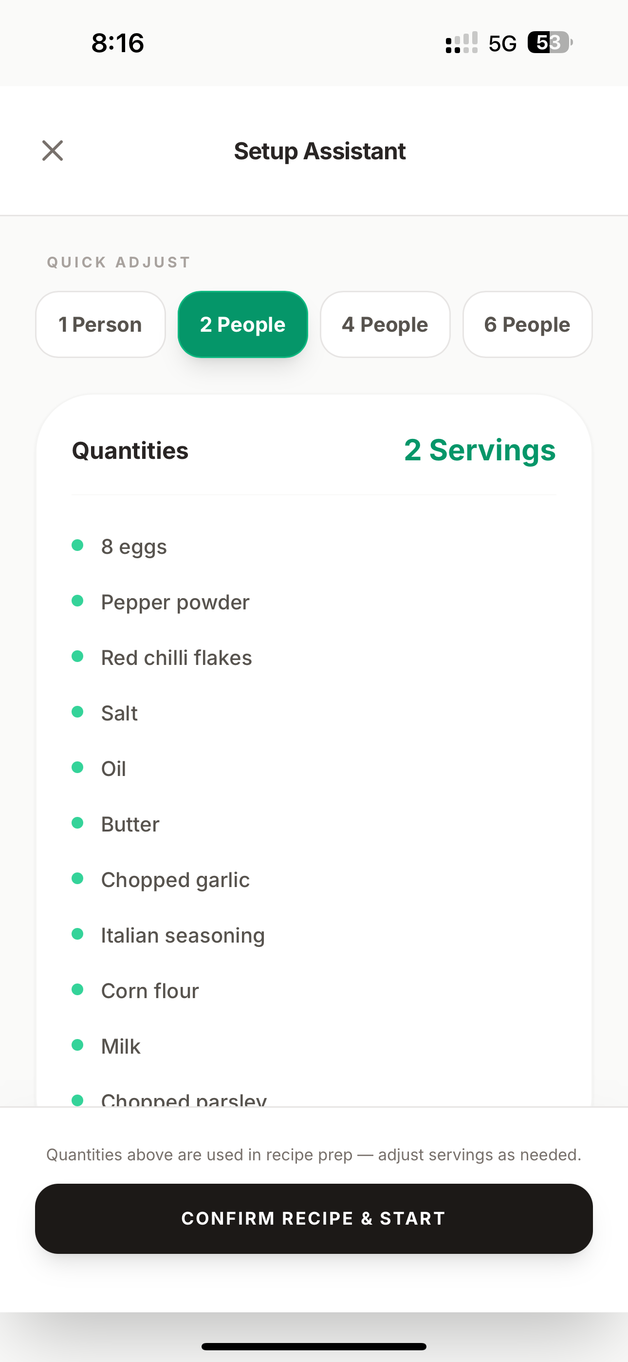People find recipes on YouTube, Instagram, or by asking AI — but once cooking starts, the experience falls apart: messy screens, constant rewinds, wrong quantities, forgotten ingredients, and no real guidance. Managing pantry items, planning meals, and remembering what to cook next adds even more friction.