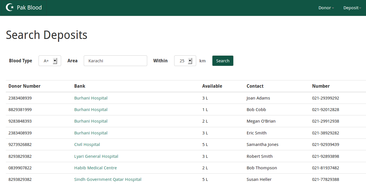 ⇒ PakBlood software: We are working on software, named PakBlood, which will allow to put in contact safe blood banks with every hospital. Our software will have to kind of users.