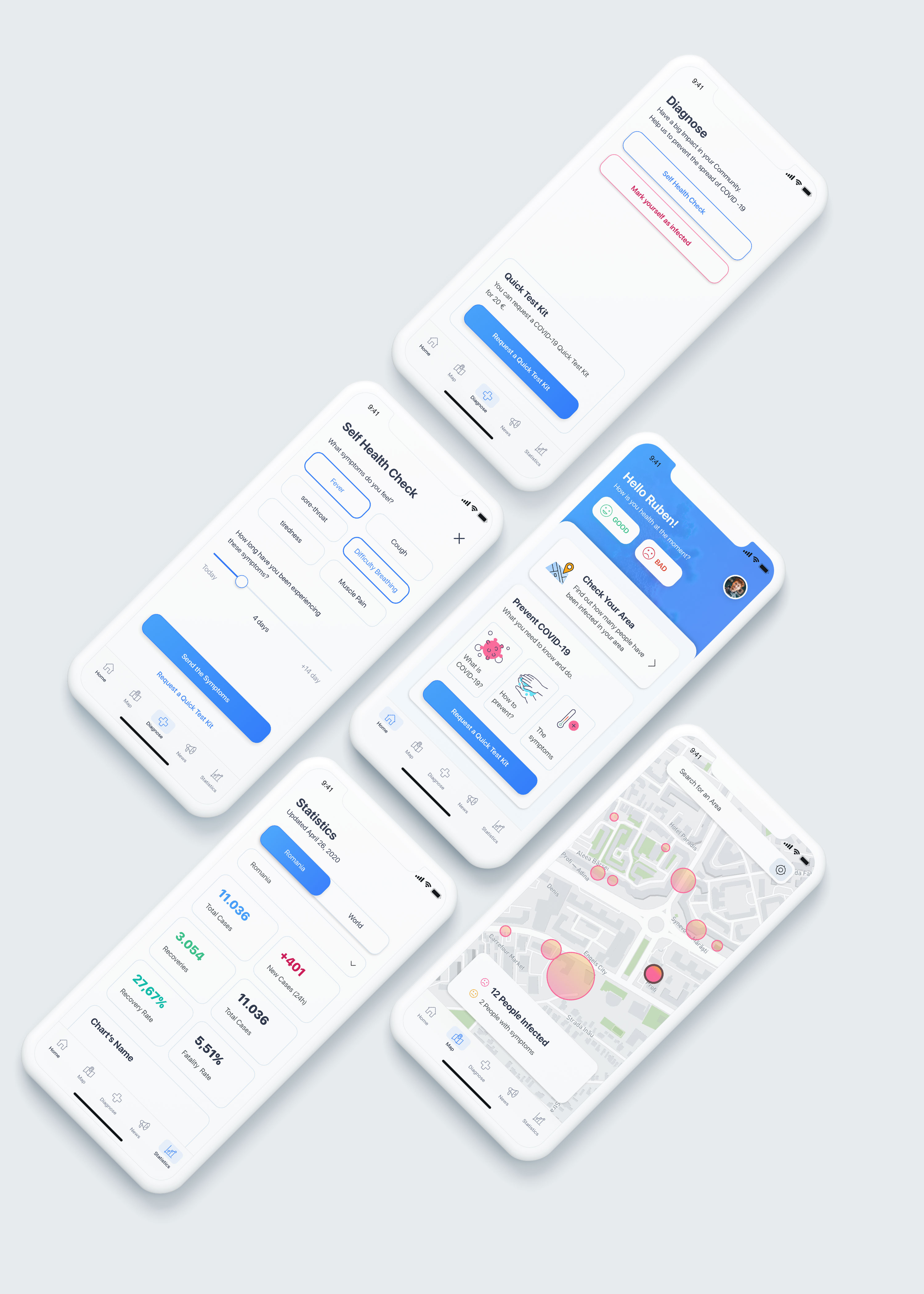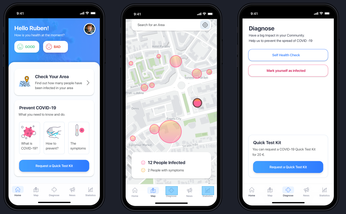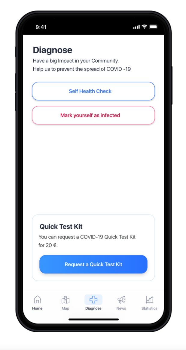 - through the Mobile Web App, by filling symptoms or by marking yourself as infected