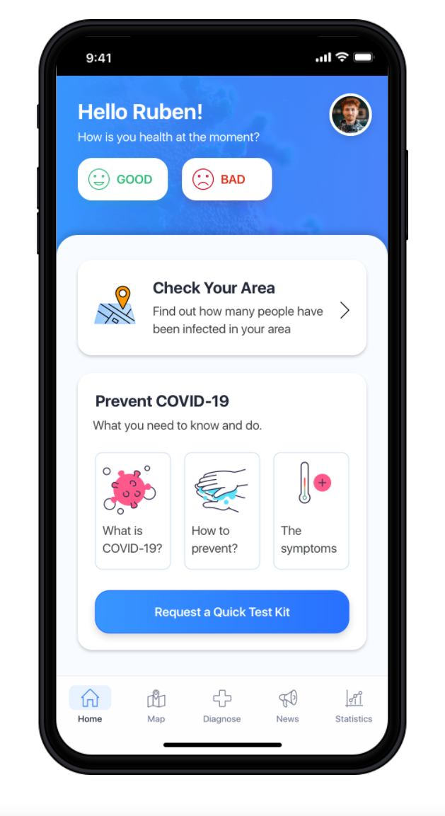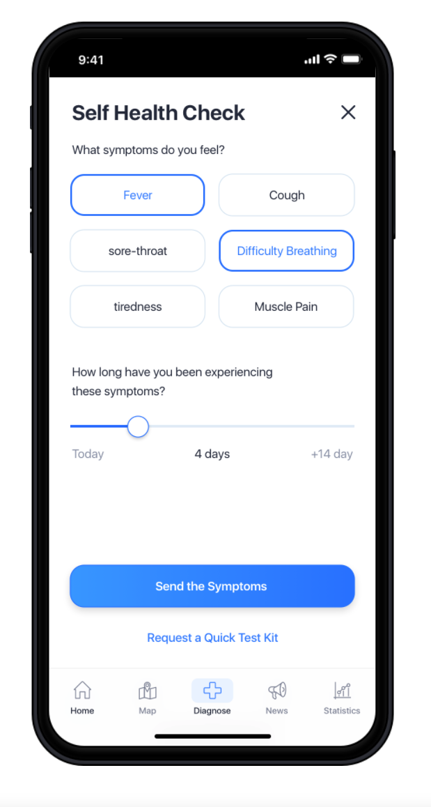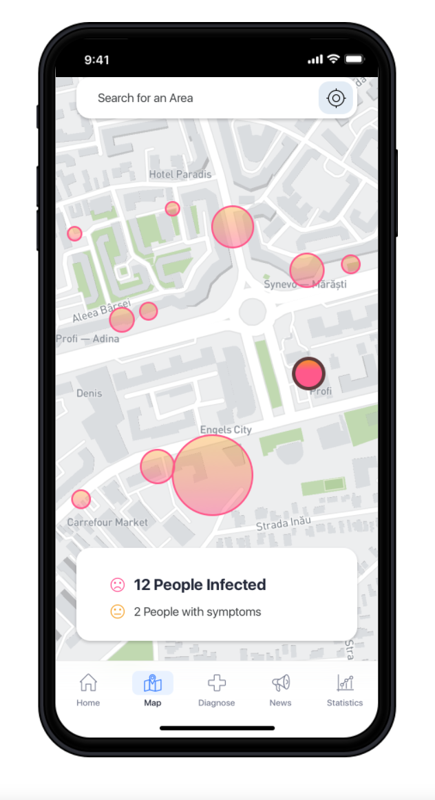 - Offers a map with infected/symptomatic proximity