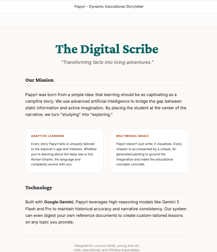 Our journey with Gemini 3 Pro has shown us that AI’s greatest potential lies not in replacing human stories, but in amplifying our capacity to tell them. As we look ahead, Papyri remains committed to making every interactive adventure a discovery, every image a window into a new world, and every word a spark for a lifelong love of learning.