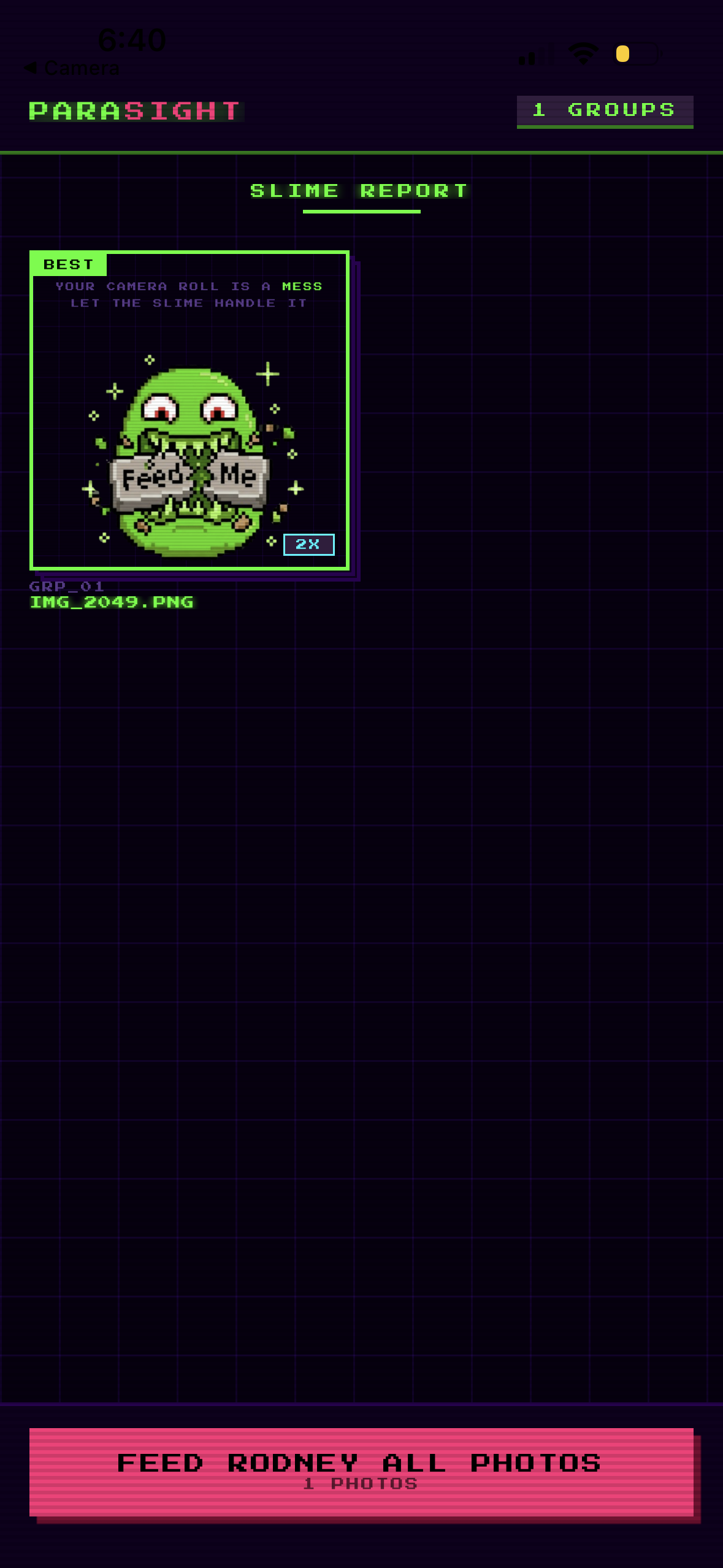 The theme was "Make it Fun," and we took it literally. We did not want to build just another utility app with a coat of paint. We wanted to give it a personality. That meant a slime mascot named Rodney who eats your bad photos, a retro CRT aesthetic, an AI that roasts your photography skills, and a Tinder-style swipe interface for reviewing duplicates.