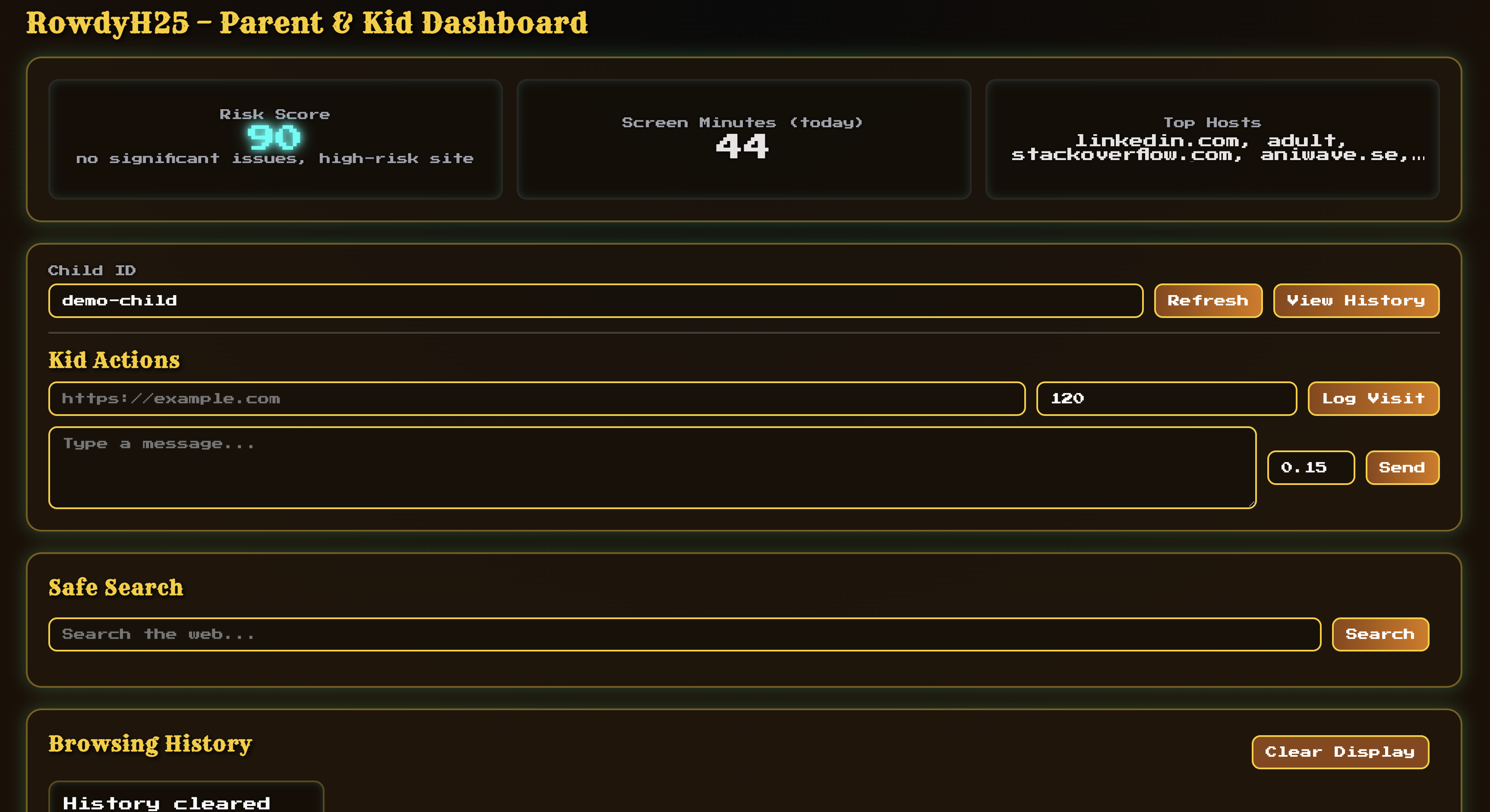 Parents & Kids Monitoring System (RowdyH25) was inspired by the need for digital trust between parents and children through smart, context-aware monitoring.