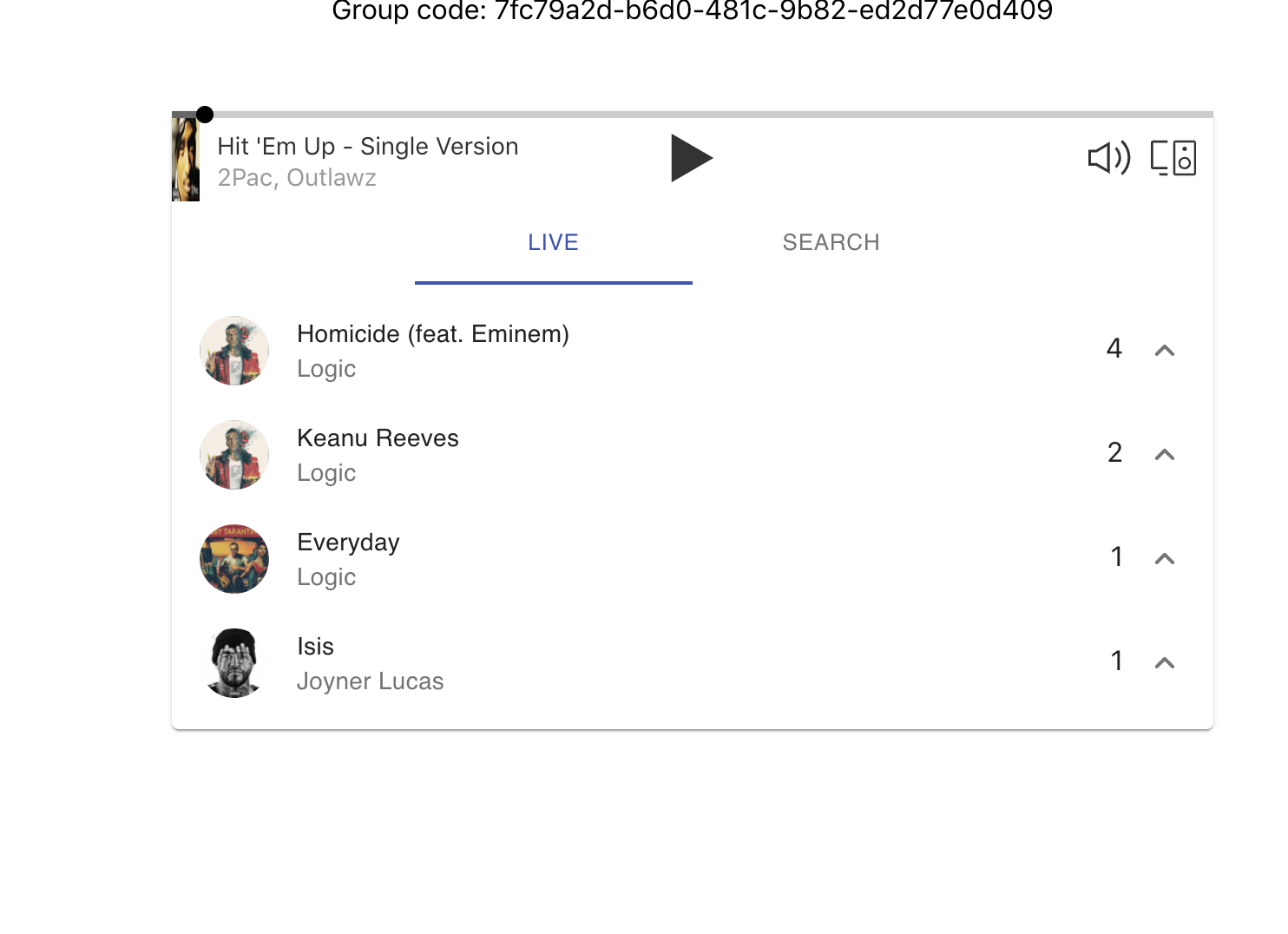 There are many problems we deal with while enjoying music in a social gathering. Most of the time it is a friend who thinks their music taste is better than ours and refuses to let us play the music of our choice. Parties, gatherings and road-trips can get boring when you have no say in the next song. These problems gave us with the desire to make our parties, road trips and study sessions more interactive and democratic. PartyUp is a roulette-style queue where you search and vote each round for songs you want to hear. Bring music back to the people
