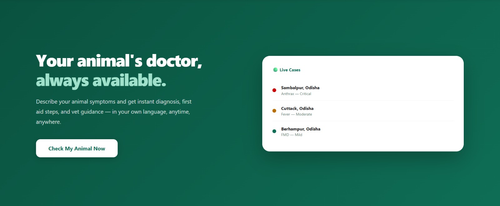 • Partnership with state Animal Husbandry Departments — real vet data and appointments