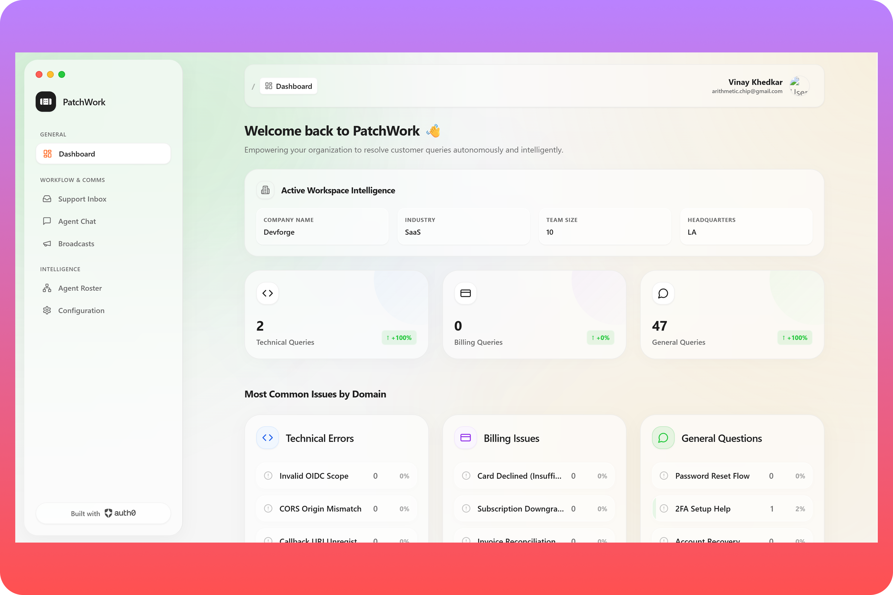 When I started building PatchWork, I thought the hardest part would be AI response quality. I was wrong. The real challenge was trust: how do you let an AI-enabled support workspace read and send messages in Gmail, and work across other providers, without turning token handling into a security liability? The biggest achievement in this project was making Auth0 Token Vault the center of the integration architecture so PatchWork could automate safely instead of just quickly.