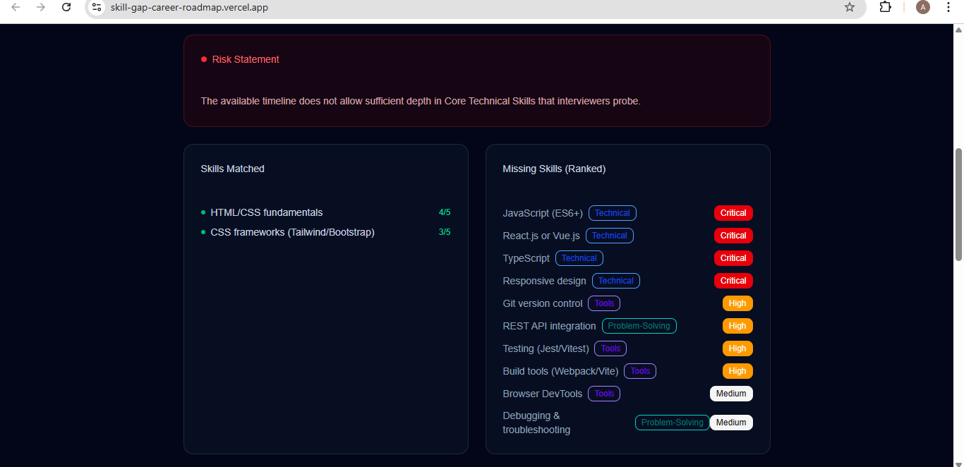 Many learners spend months learning random skills but still don't know if they are actually job-ready. We wanted to solve this confusion by focusing on skills gaps and employability, not just courses.