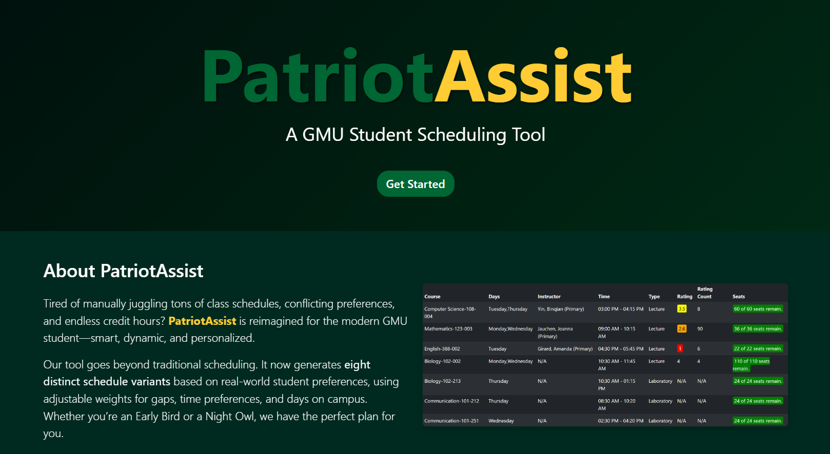 Born out of the frustration of endless class scheduling, PatriotAssist was designed to empower students with smart, intuitive tools. We believe in a future where academic planning is efficient, personalized, and effortless.