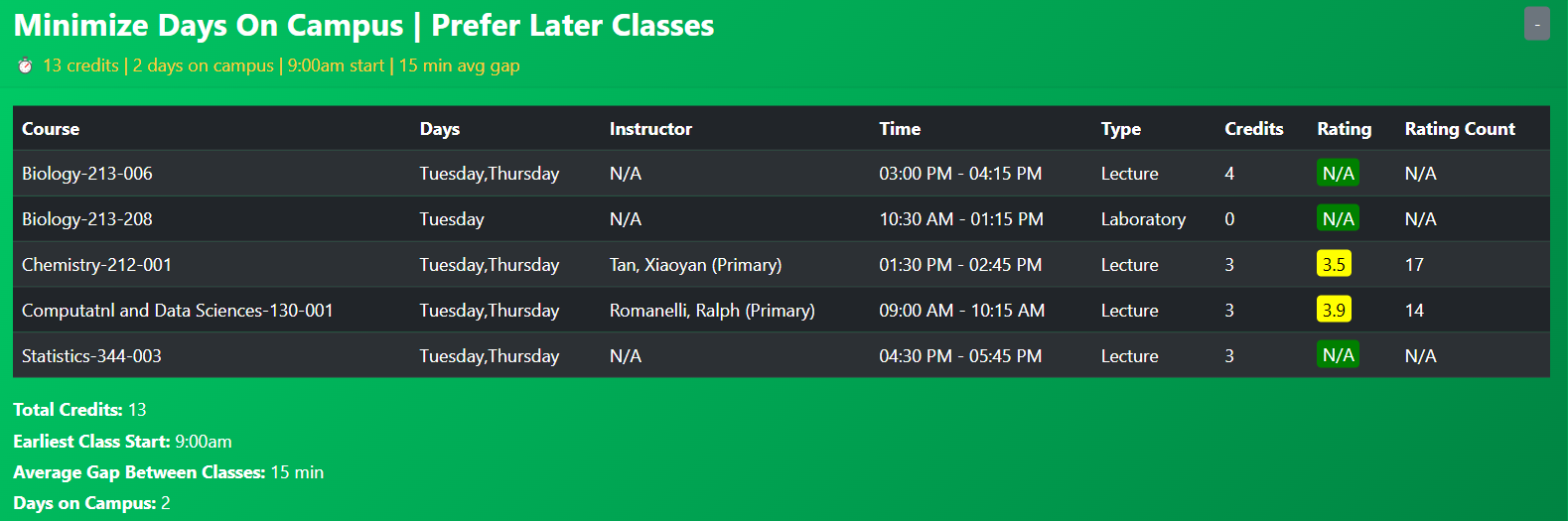 Do note that every course in George Mason is supported so feel free to select course by random.