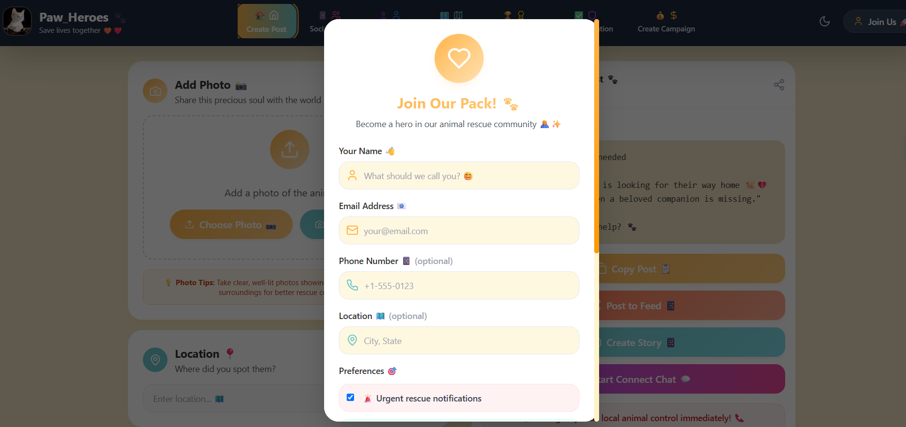 A space to report, rescue, donate, adopt, and unite for a cause that matters.