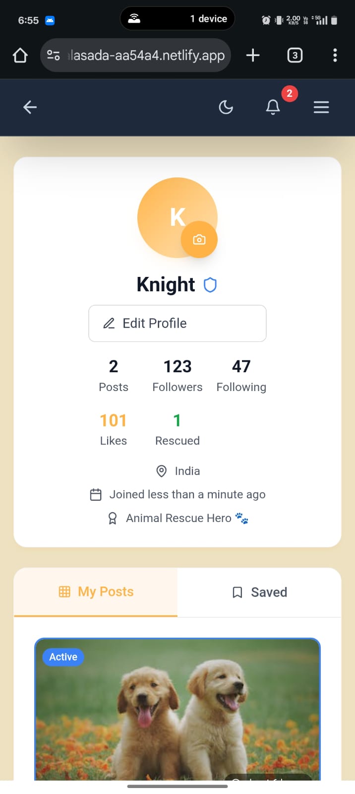 💸 Donation Campaigns: Verified animal organizations can post transparent donation requests — with reason, target, and live progress. Donors can trust that their contribution goes to real causes.