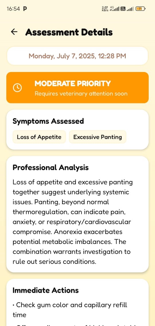 - 🏥 AI Vet Assistant (Luna): Checks symptoms and provides quick home guidance.