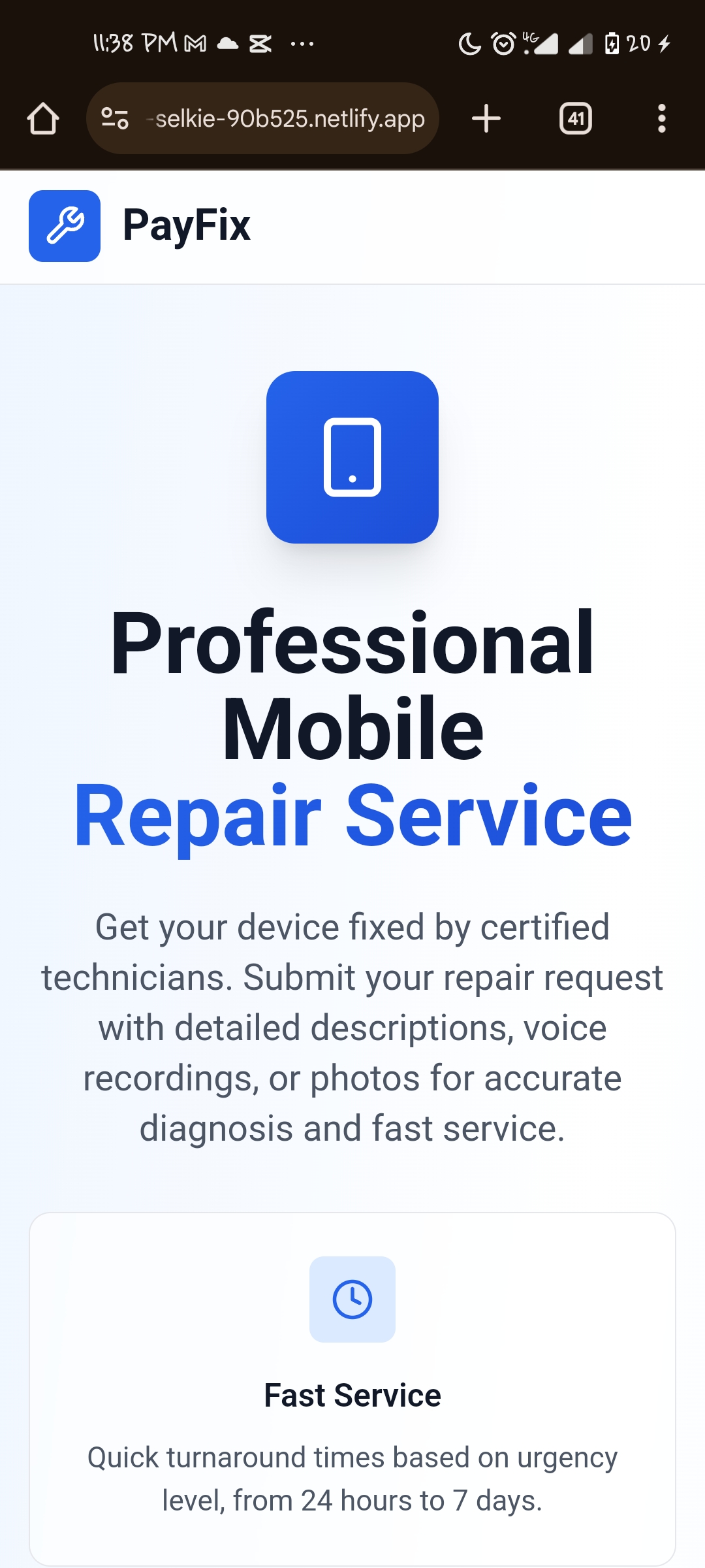 The PAYFIX Mobile Repair App allows customers to submit repair requests by filling out a form with their device issues. Their data, including the urgency of the repair and their contact info, is then saved securely in a Supabase database. A confirmation email is automatically sent to the customer after submission.