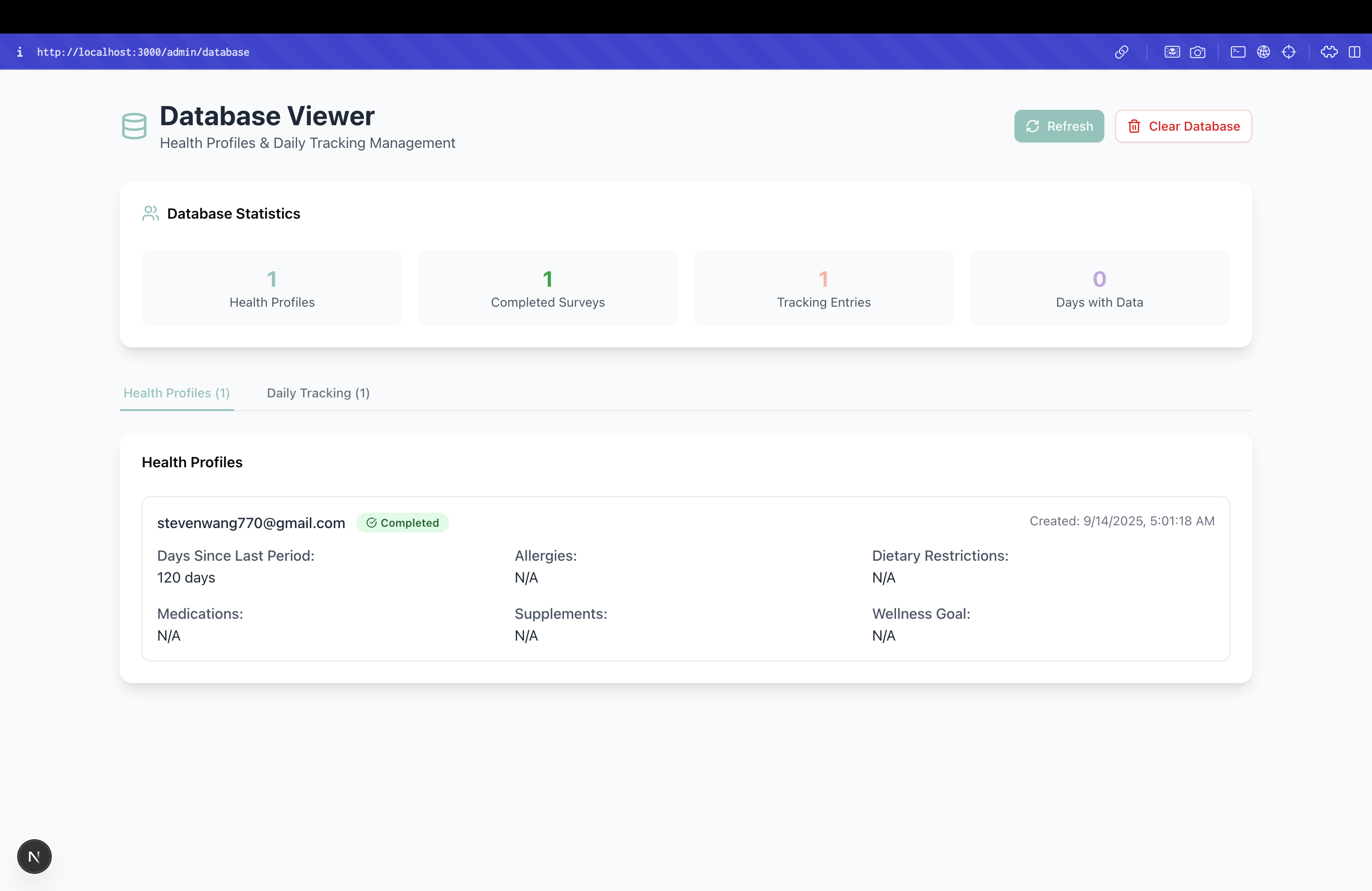 We ran into data limitations early on; while variables like bone density are strong predictors for hypothalamic amenorrhea recovery, they aren’t easily accessible through consumer devices, which forced us to rethink our model inputs. Integrating our LSTM prediction model with the live website was another major hurdle, requiring complex coordination between the FastAPI backend and the frontend to make predictions run smoothly in real time. Finally, even small edits to our database schema turned out to be painful, since they required migrating the entire database structure, which slowed down our iteration and testing.