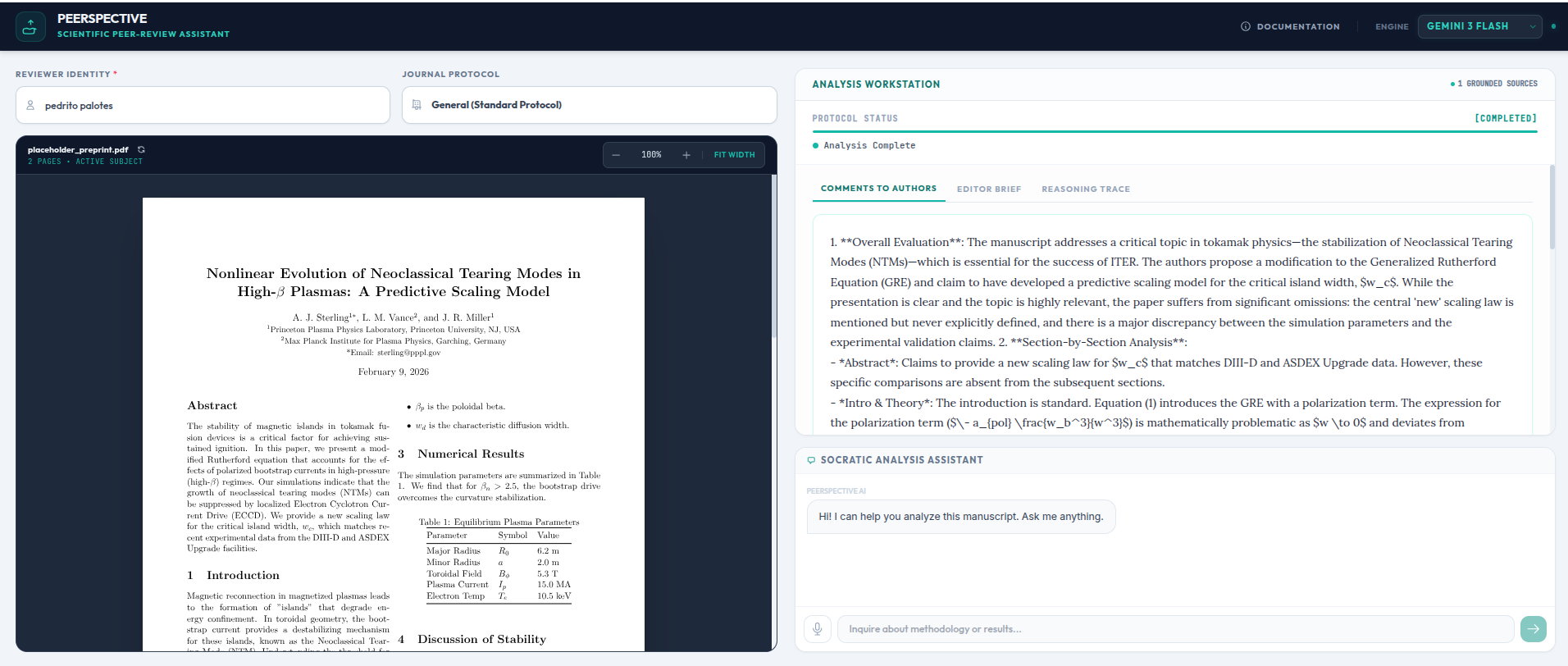 Peerspective is a split-screen workstation that acts as an extra set of eyes. It cross-references text with figures to ensure data consistency, uses real-time search to verify novelty, and checks for conflicts of interest. To match professional workflows, it drafts separate reports for authors and editors. It also explains its reasoning and if further doubt arises, there is a chat assistant that can answer questions about the paper.