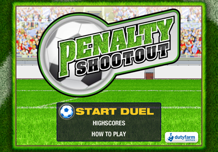 Play Penalty Shootout and feel the thrill at the mark!Are you an ice cold goal getter and anticipating goalkeeper? Find out in this thrilling game of penalty shootouts, where you can become the matchwinner or the big loser!Right, left or straight throught the middle - it's your decision and your chanceto win the duel. It's not just a random corner, it's your opponents decision where to shoot or where to dive for the ball. Take up the challenge and play against real opponents! Winning games frequently? Get it on and show everybody that you are the best penalty scorer and the quickest goalkeeper of all times! Eternalize your name in the highscores! Play Penalty Shootout by dutyfarm.com