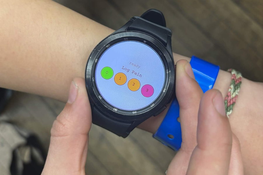 wearos integration: Lets users discreetly measure their pain when necessary on a wearos watch—their recorded pain is then uploaded to the app for users to review.