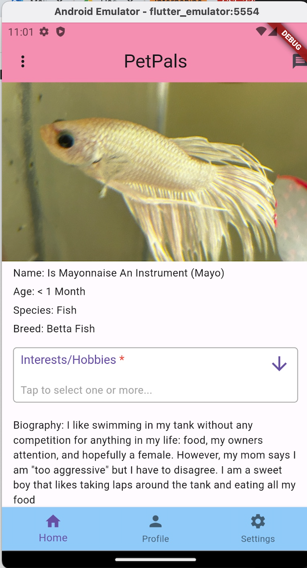 Inspiration: Our inspiration was to have a funny spin on traditional dating apps like Tinder and Bumble. What person does not think that cute animals are funny?