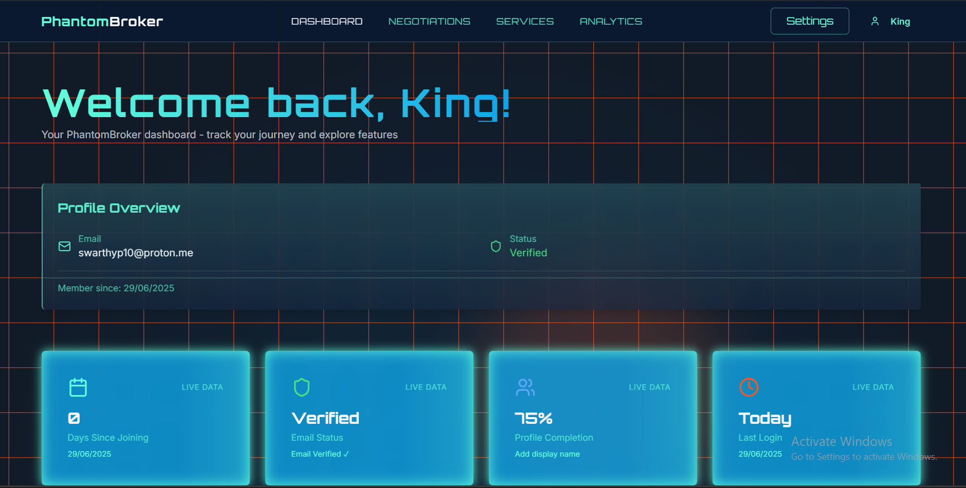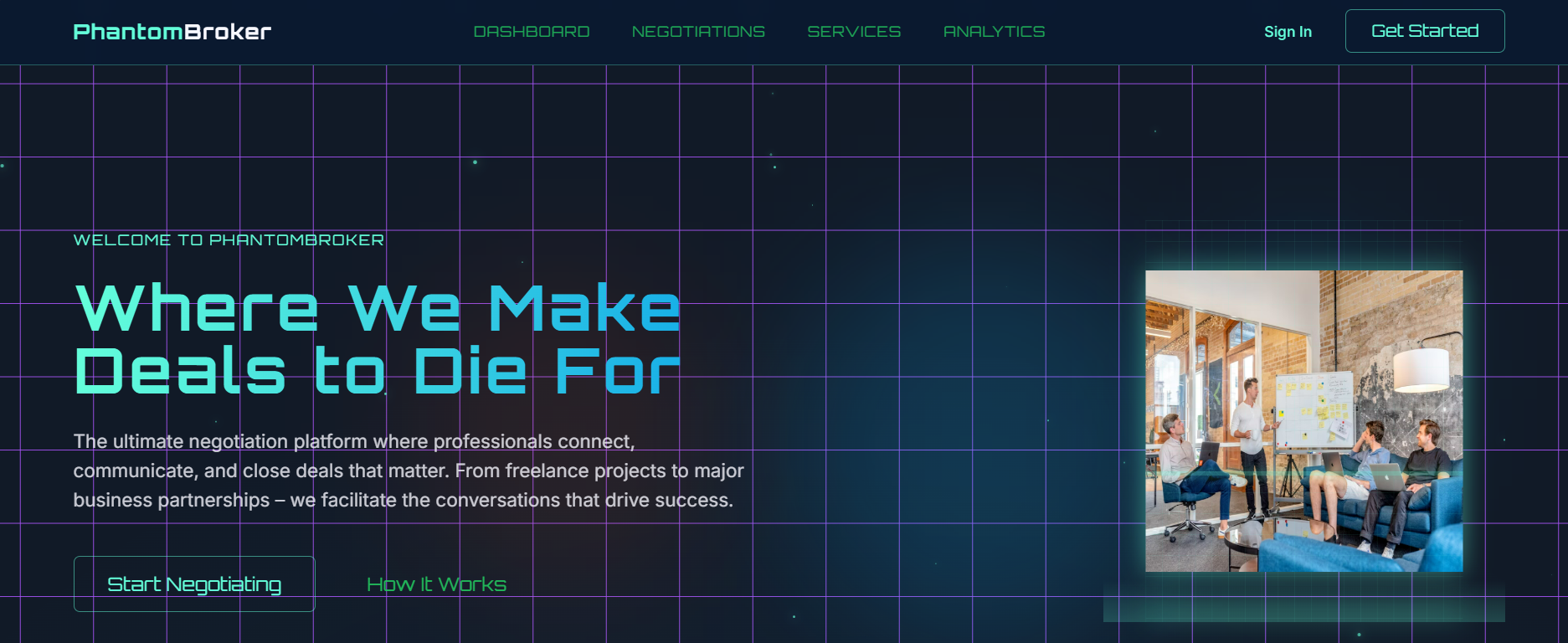 PhantomBroker was inspired by the need for a modern, streamlined way to negotiate deals and manage contracts online. We noticed that most platforms either lacked real-time communication or made contract management cumbersome. Our goal was to create a tool that makes negotiations as seamless as chatting, while keeping everything organized and accessible.
