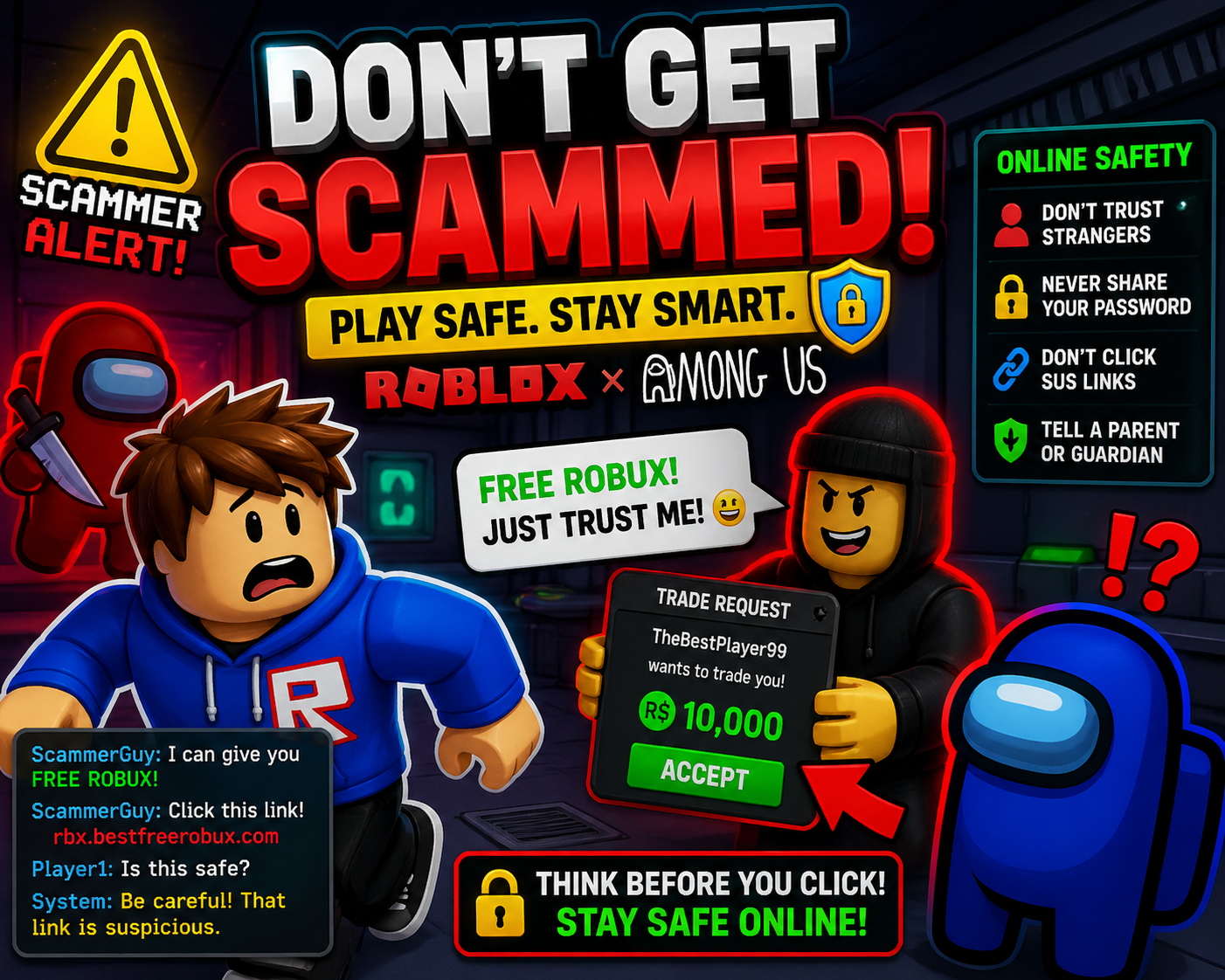 Inspiration Kids face phishing and impersonation daily, but most safety lessons are passive. We wanted a game where players practice spotting manipulation in a fun, social setting.
