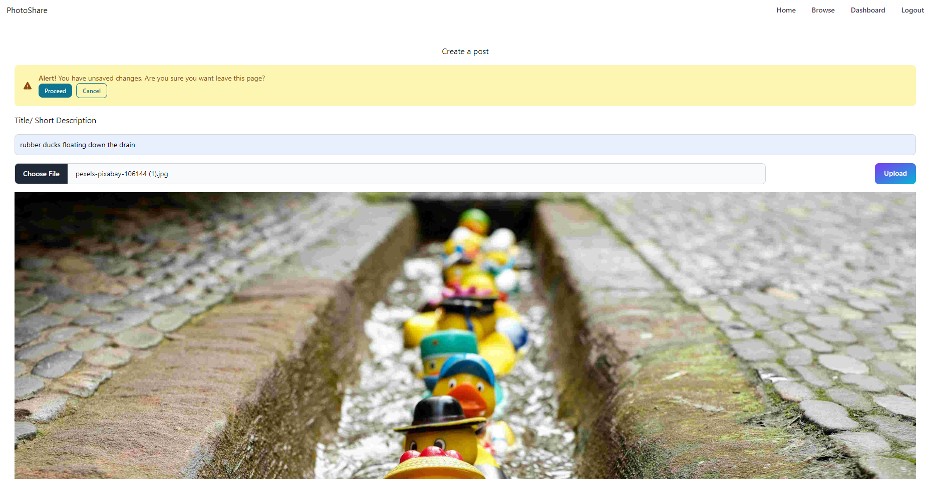 I try to account for unexpected actions of the users such as creating a post but never clicked the Share/submit button and changing route to home, dashboard, logging out, or browse. This means that the image url would be created and stored in Firebase, but not utilized which is wasting storage space. To counter this, I implemented a blocker so user needs to confirm or cancel leaving the creation page where confirming will delete the image file from Firebase.