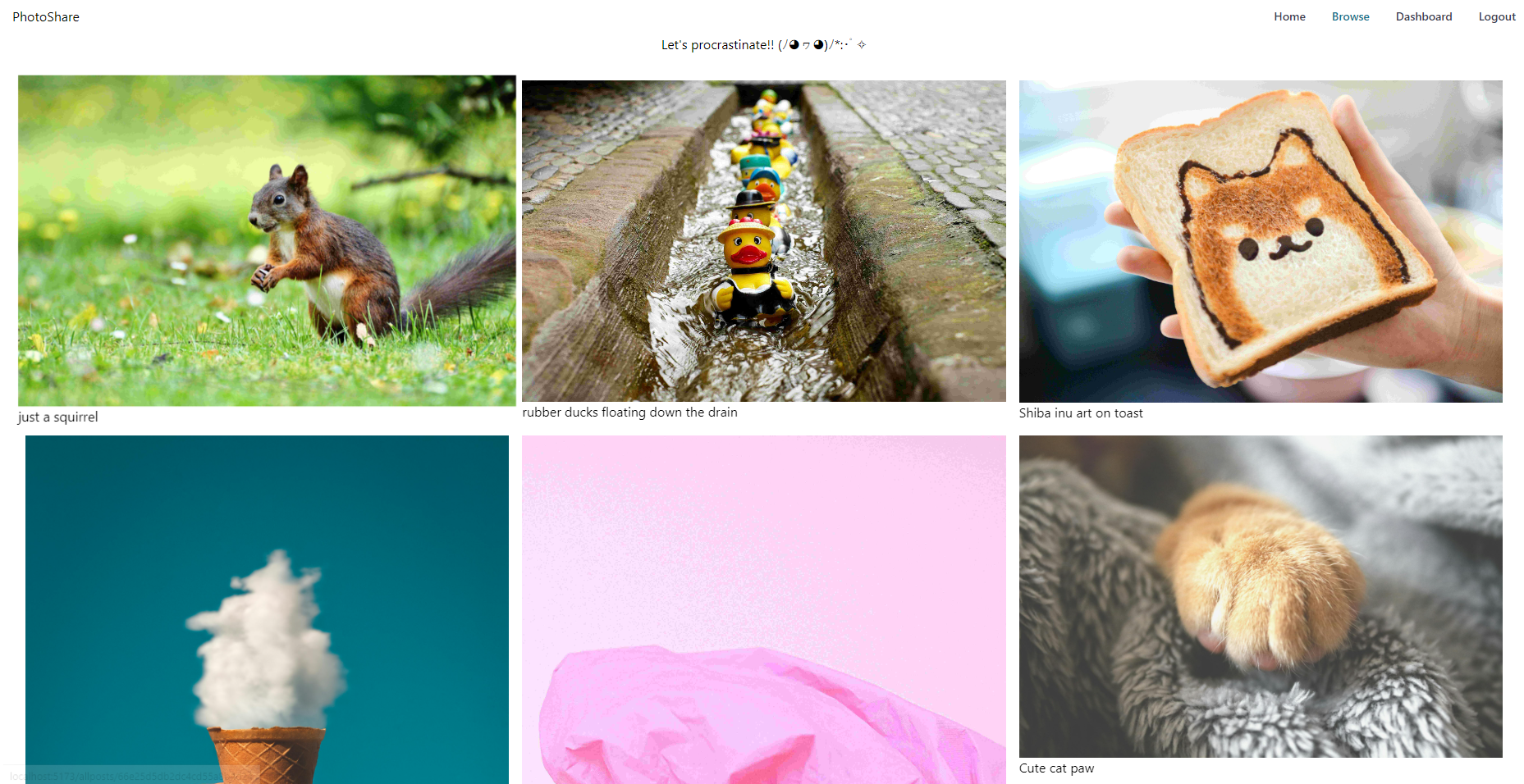 One of the challenges is to create a Hack to Share Photos on the Cloud. I took inspiration from Pinterest website to create an application where users can share silly images.