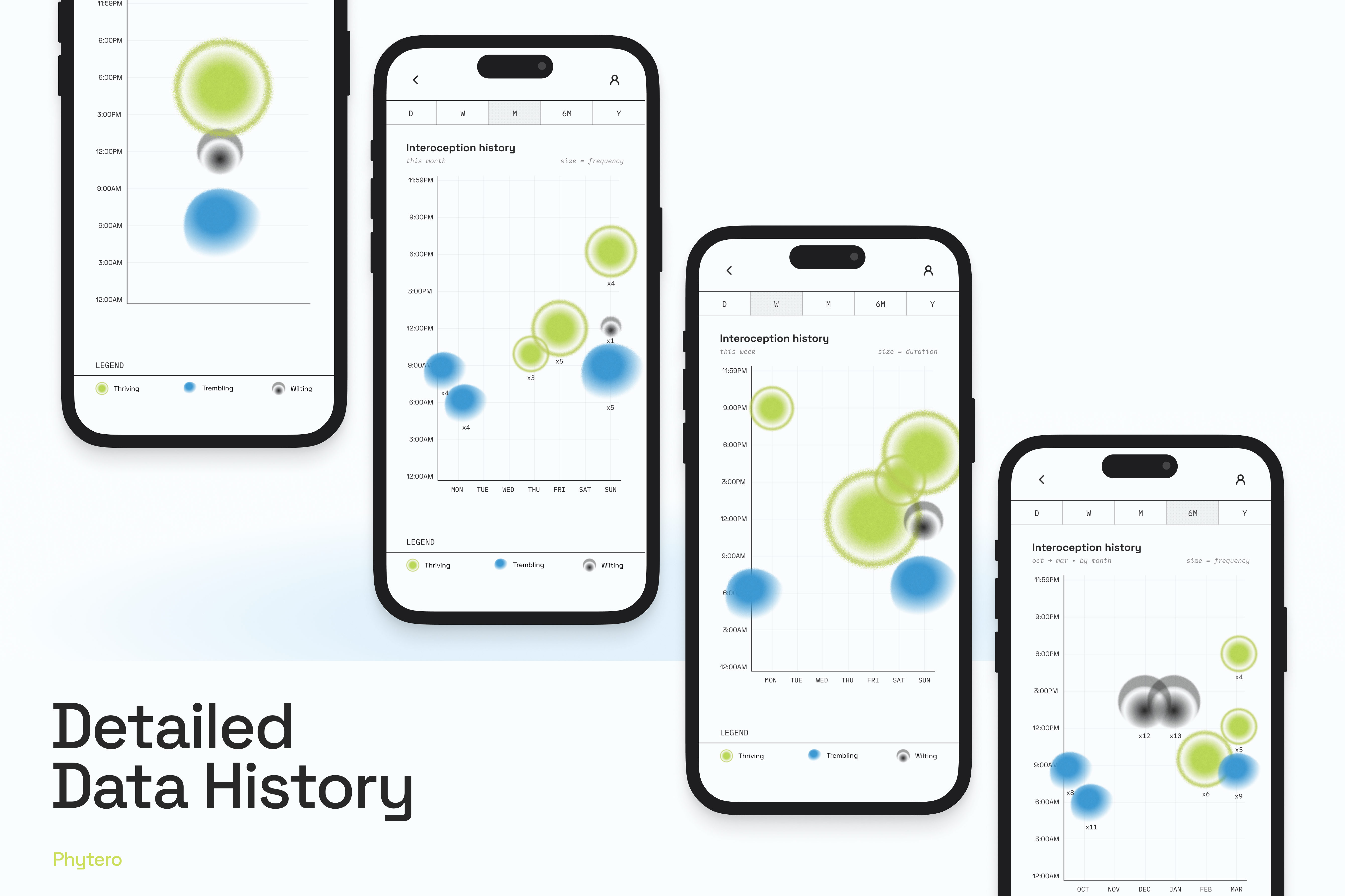 Your interoceptive patterns over time — by day, week, month, and beyond.
